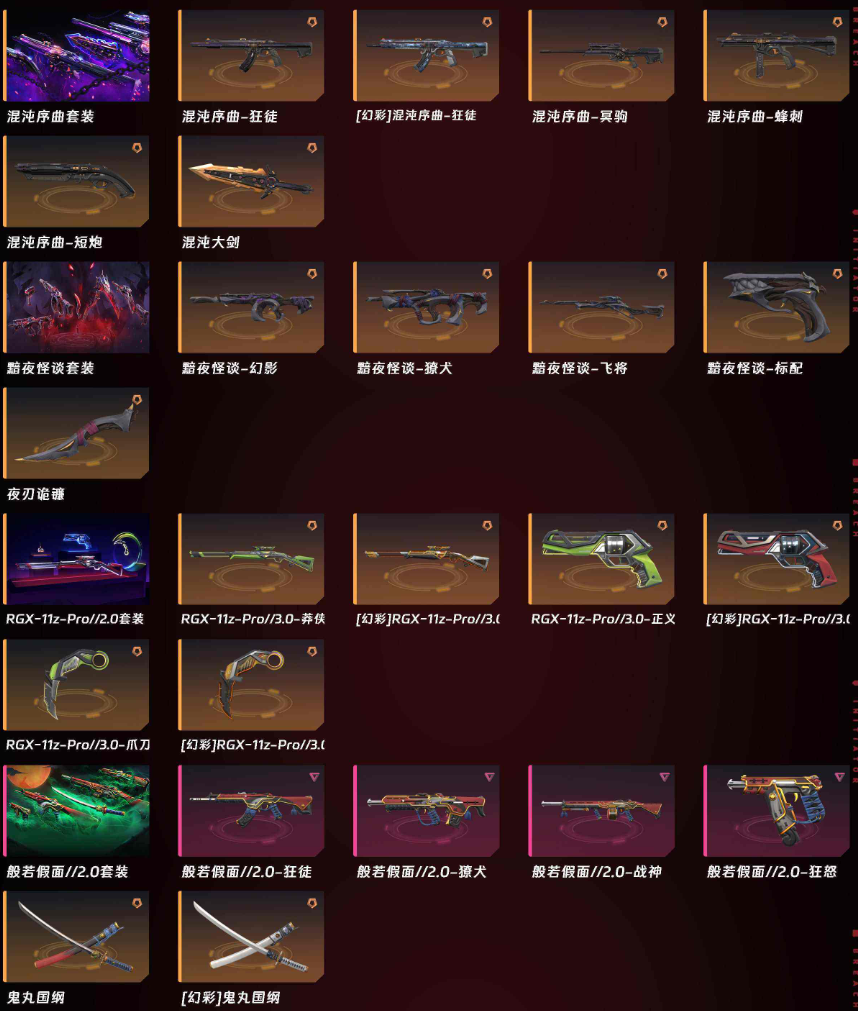 可排位大库存☆RGX套☆混沌序曲套☆黯夜怪谈套☆鬼丸☆盖亚☆洪荒☆蝴蝶刀☆超能偶像☆各种散件☆炫彩