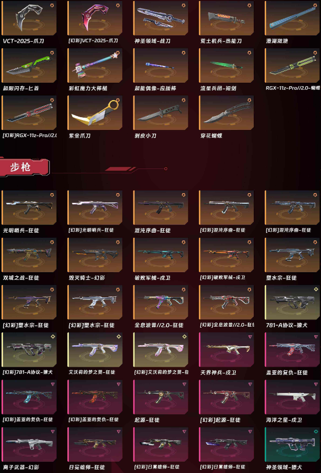 可排位大库存☆VCT爪刀☆RGX☆塑水宗☆双城之战☆混沌序曲☆艾沃莉☆盖亚☆奇点2.0☆各种散件☆炫
