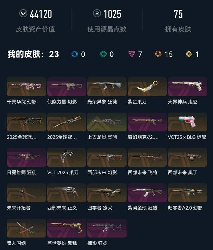 可排❤️4.4万.光荣异象25冠军套日冕雄狮紫金掠夺.vct爪刀紫金爪蝴蝶刀❤️侦察力量千灵华绽西部