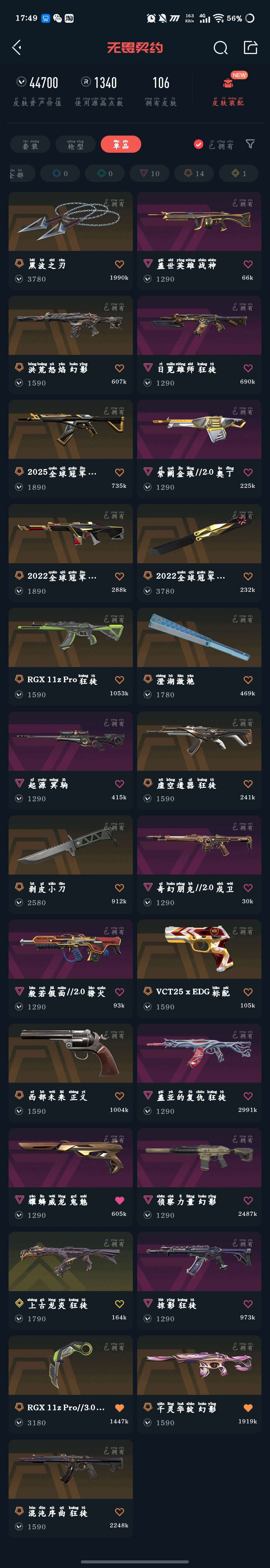 武器皮肤数量:106
