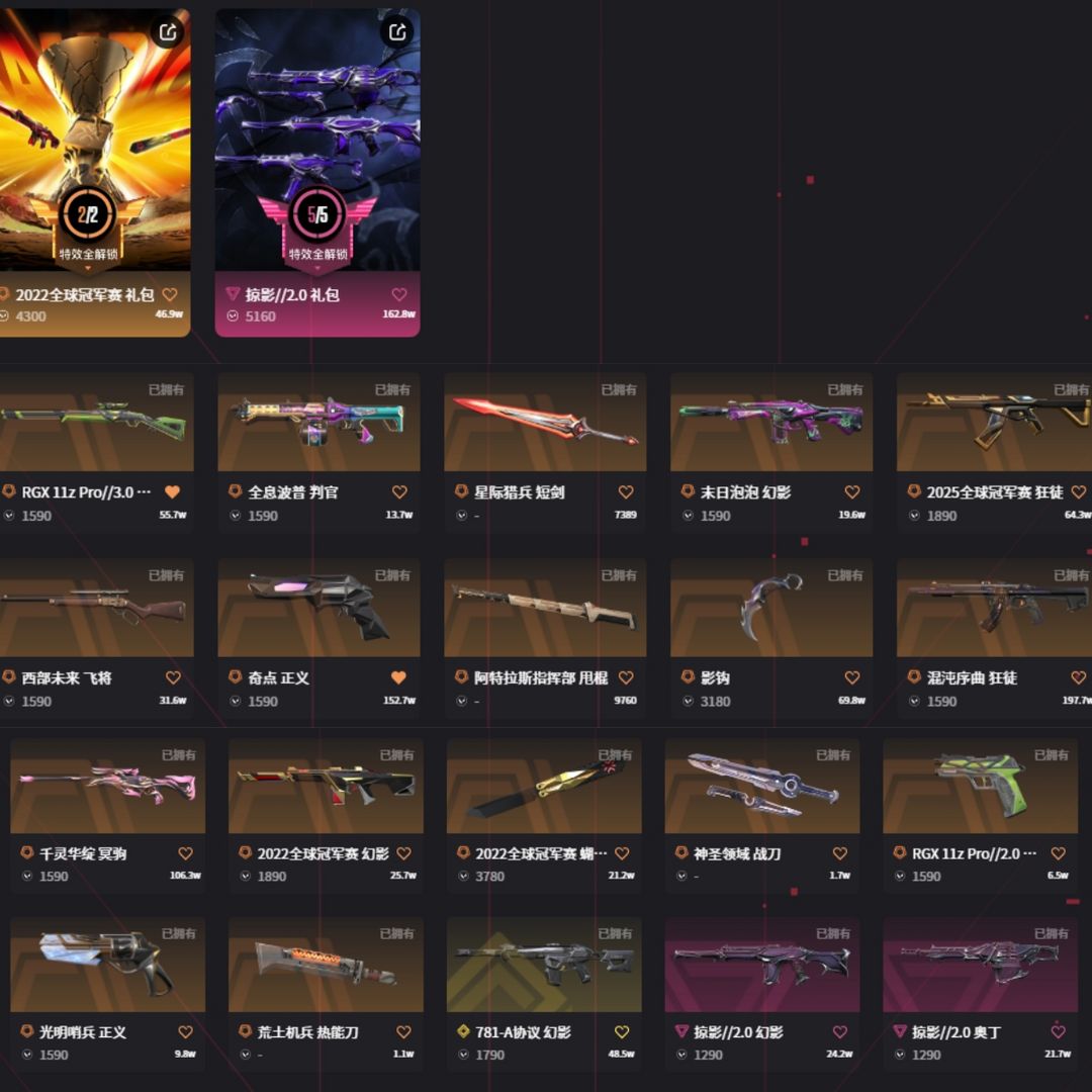冻结秒解☆可排位☆大库存☆22套☆掠影2.0套☆25狂徒☆RGX莽侠☆末日幻影☆奇点正义☆混沌序曲☆