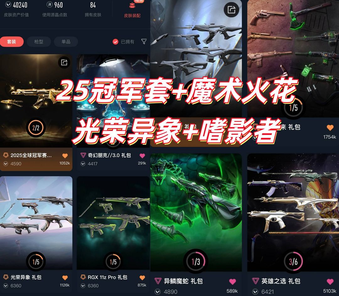 可排✨25冠军套光荣异象✨魔术火花剥皮紫金爪刀✨嗜影者显卡2.0塑水宗✨混沌2.0蛇年幻影✨天界鬼魅