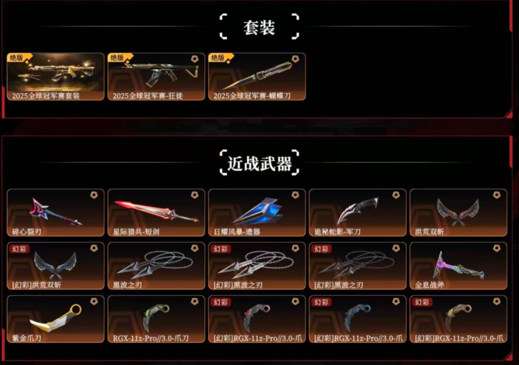2025冠军套✨超时空盖亚的复仇紫金RGX虚空全息奇点颗秒掠影离子781侦查幻影碎心裂刃黑波之刃爪刀