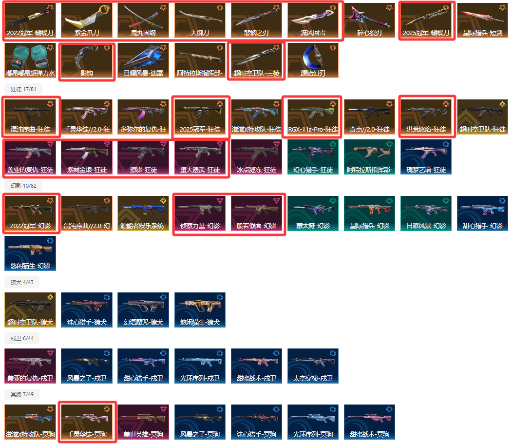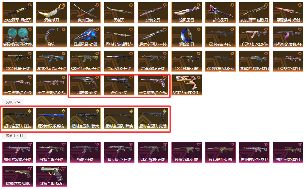 10W库精品号⭐22/25冠军套怜悯之刃⭐超时空三棱影钩紫金爪⭐莲花20套⭐混沌显卡流脓盖亚AK侦察