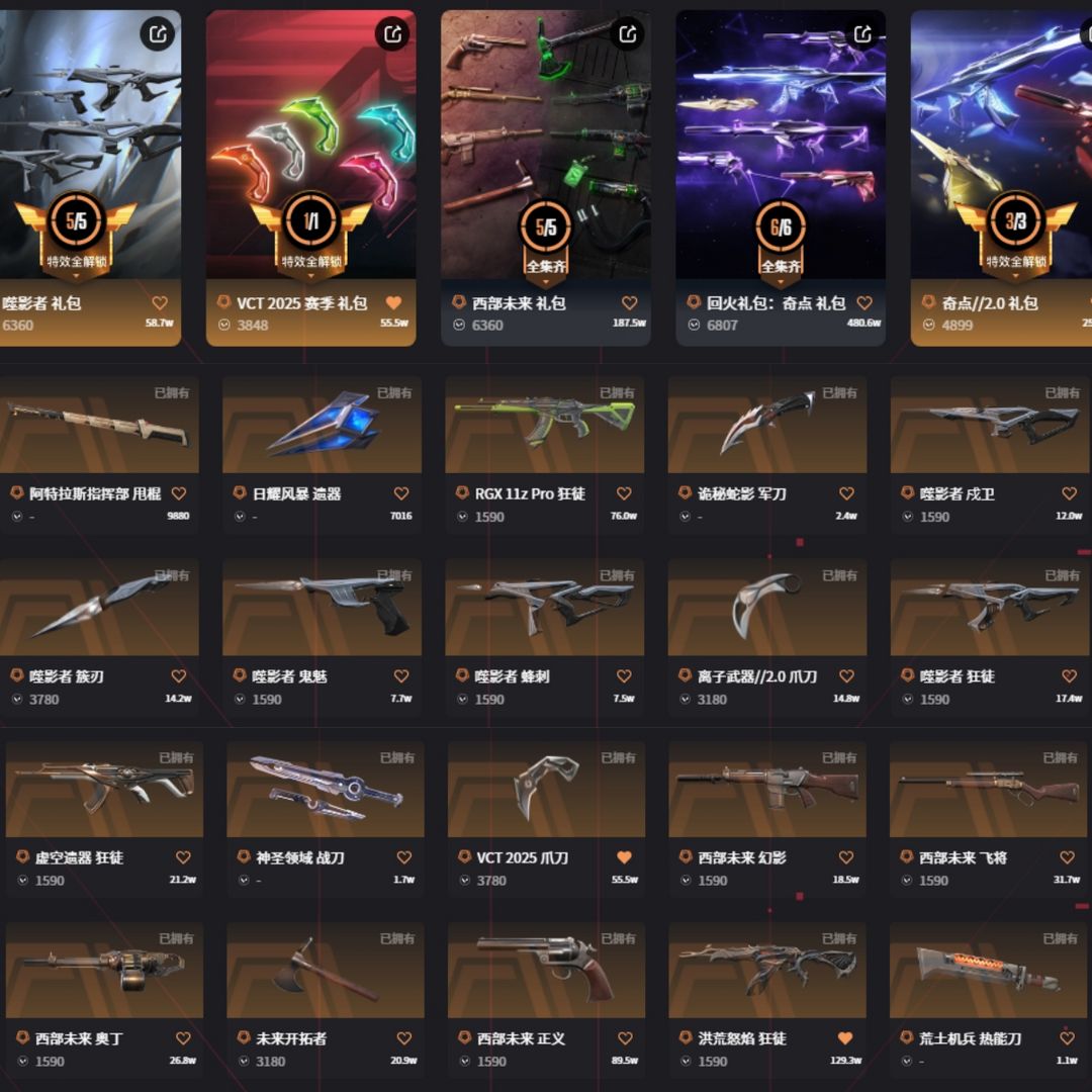 冻结秒解☆可排位☆大库存☆噬影套☆VCT套☆西部套☆奇点套☆奇点2.0套☆离子2.0套☆RGX狂徒☆
