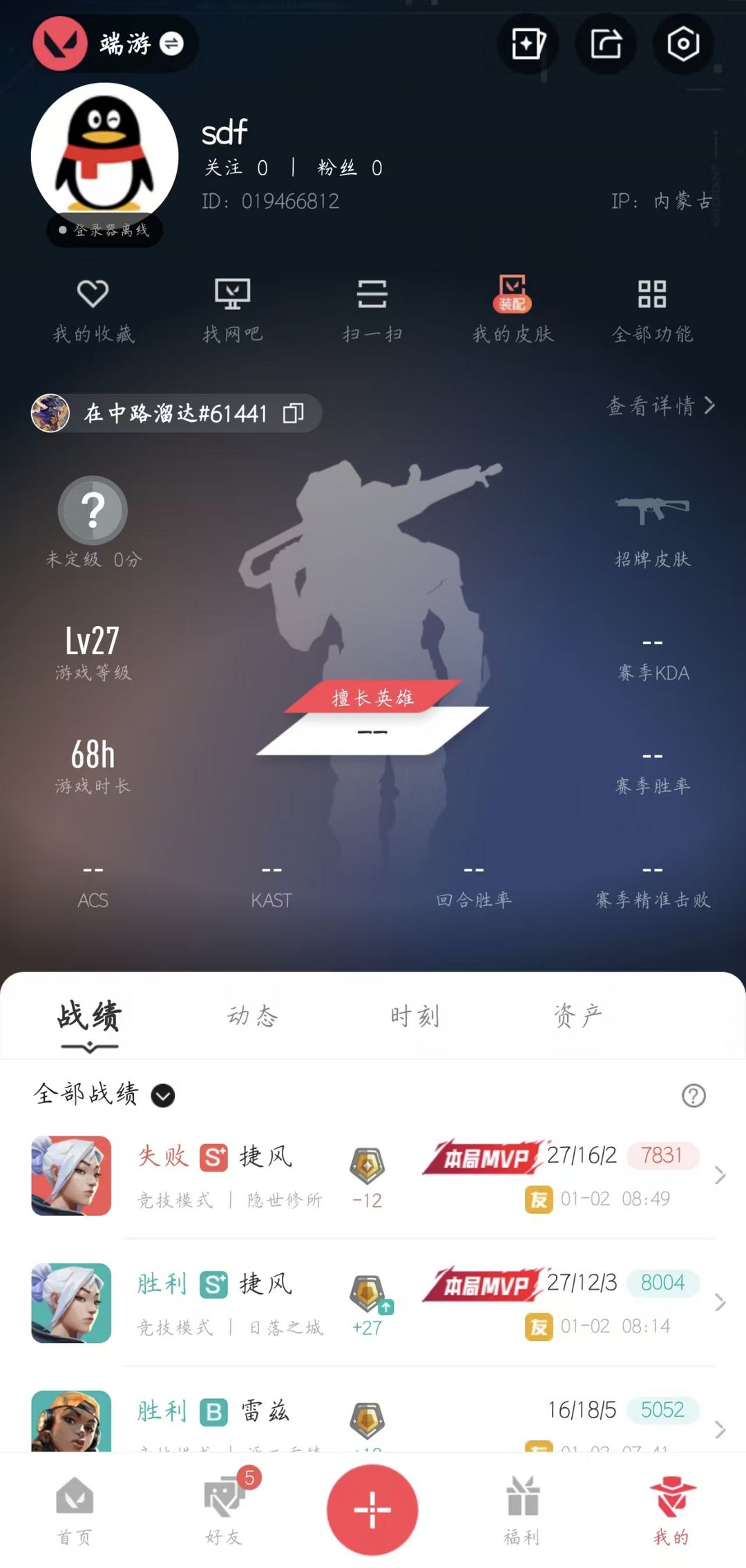 无皮肤基础账号,可排位练手,免押金2小时起租