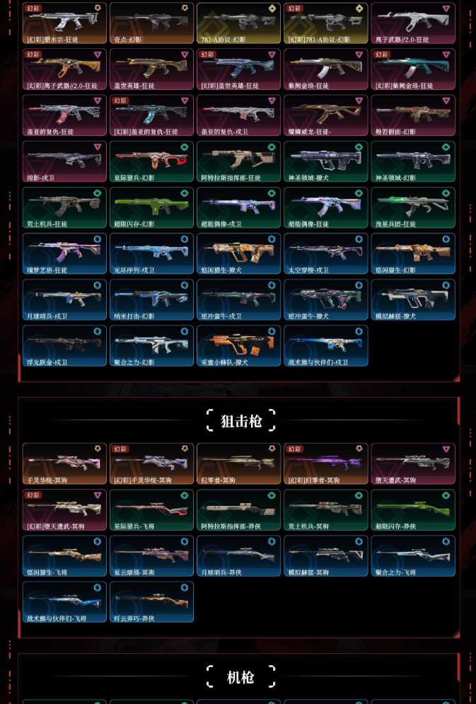 装备描述:25冠军显卡3.0掠影2.0奇点2.0vct爪刀超限闪存匕首威龙之刃魔术火花混沌序曲2.0撩犬混沌序曲狂徒双城之战正义黯夜怪谈幻影洪荒怒焰狂徒塑水宗狂徒奇点幻影协议幻影离子武器2.0狂徒盖世英雄狂徒紫阙金琅狂徒盖亚的复仇狂徒耀鳞威龙狂徒千灵华绽冥驹归零者冥驹堕天遗武冥驹奇点骇灵光荣异象判官vctedg标配塑水宗正义偃月苍龙正义奇点正义