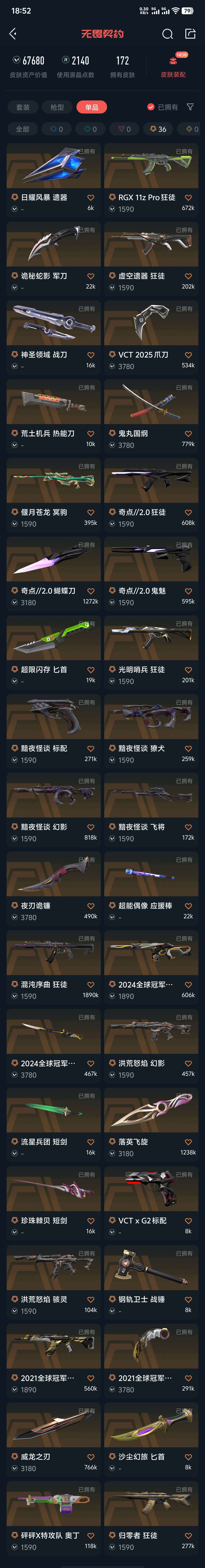 21冠军套24冠军套VCT25爪刀起点2.0套装暗夜怪谈套装侦查力量幻影太刀威龙之刃紫金AK