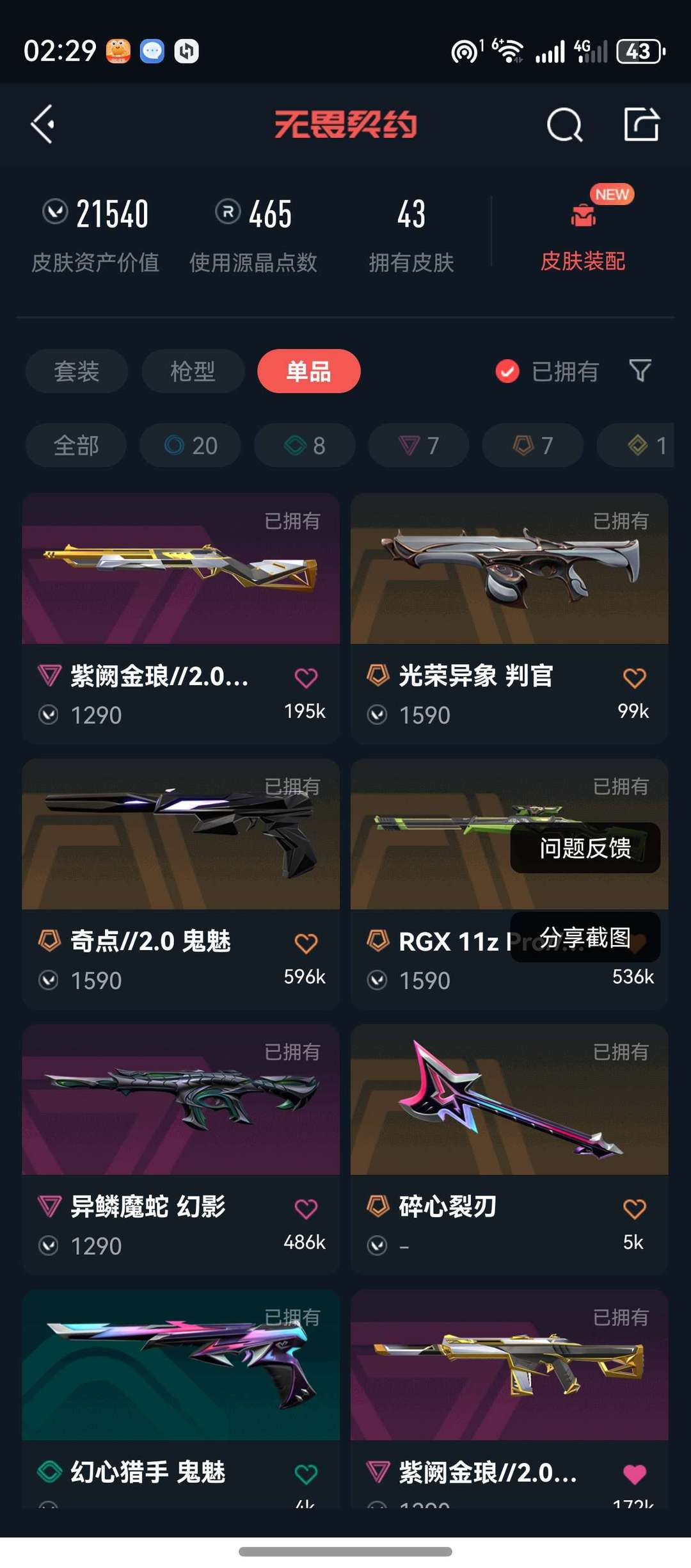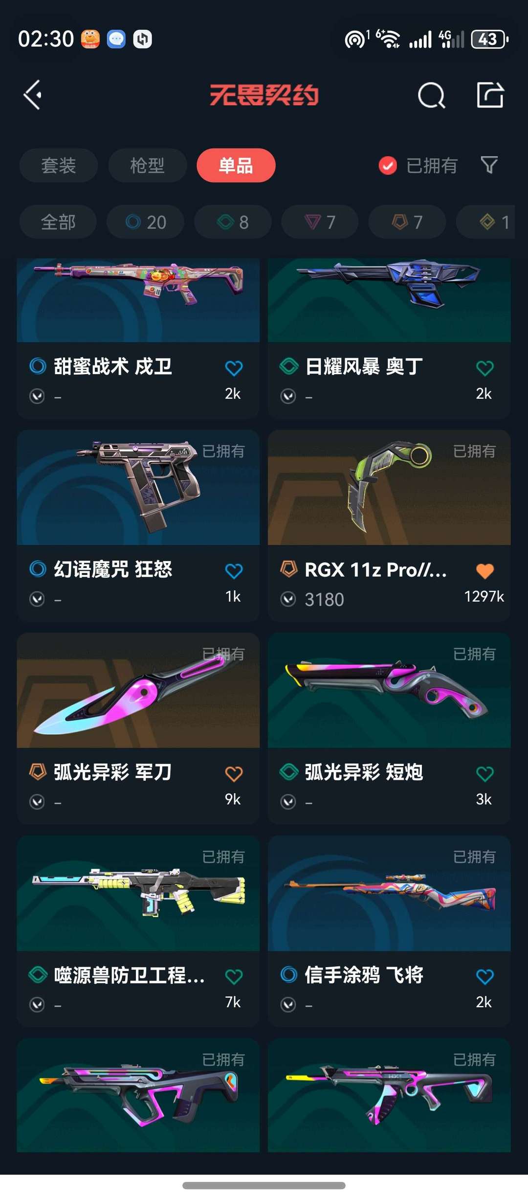 武器皮肤数量:43