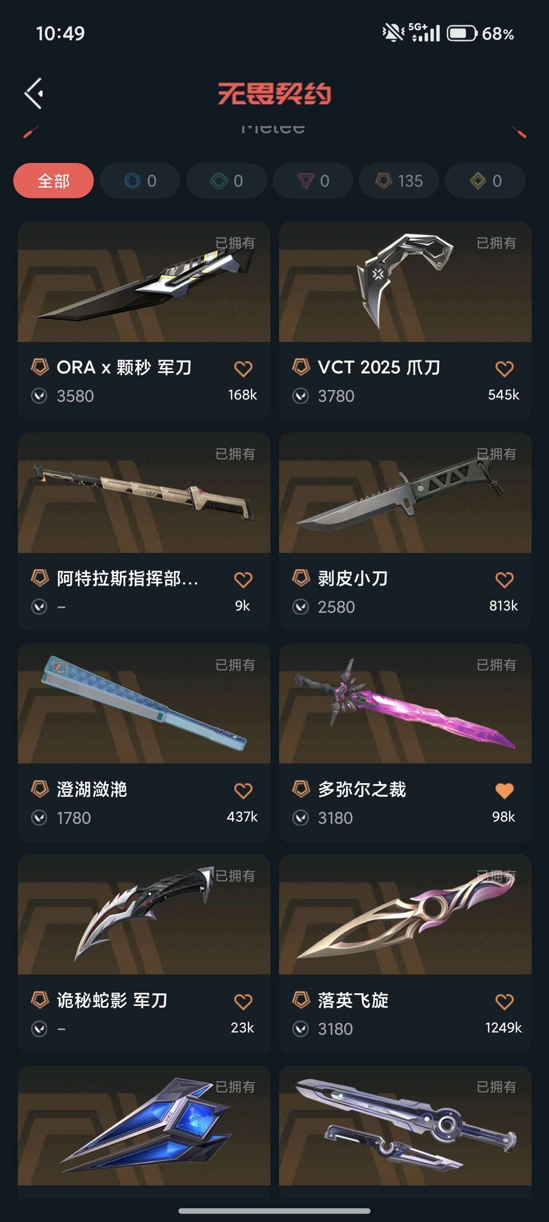 颗秒套 多米尔复仇套 紫金爪刀 剥皮小刀 vct爪刀