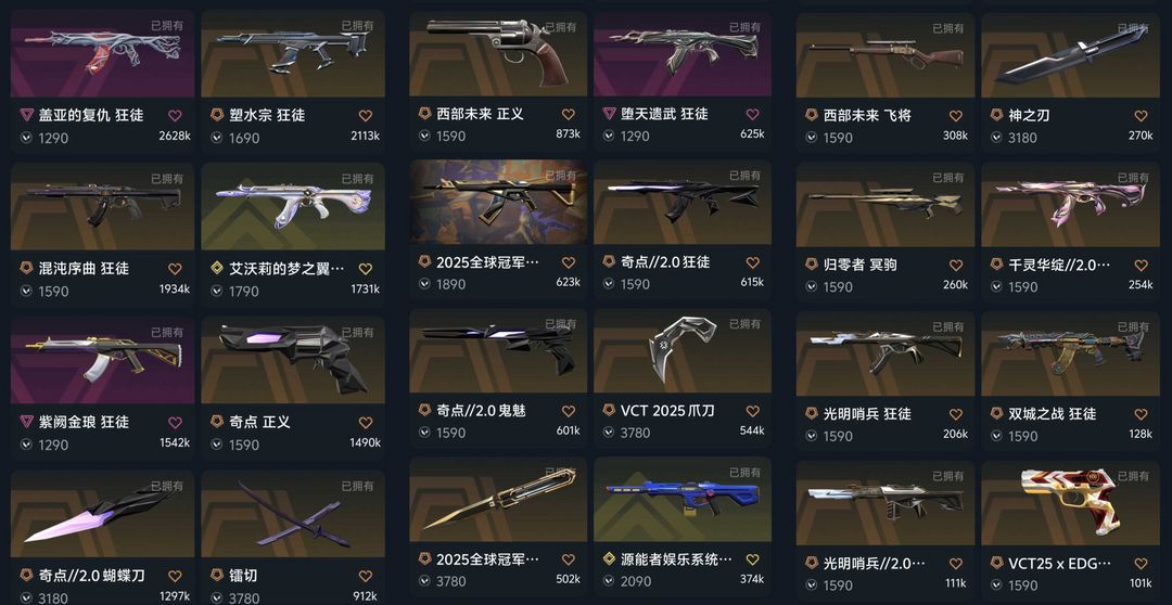 可排5w✨25冠军套✨VCT爪刀✨莲花狂徒✨梦之翼狂徒✨塑水宗狂徒✨双城狂徒✨神之刃✨混沌狂徒✨镭切