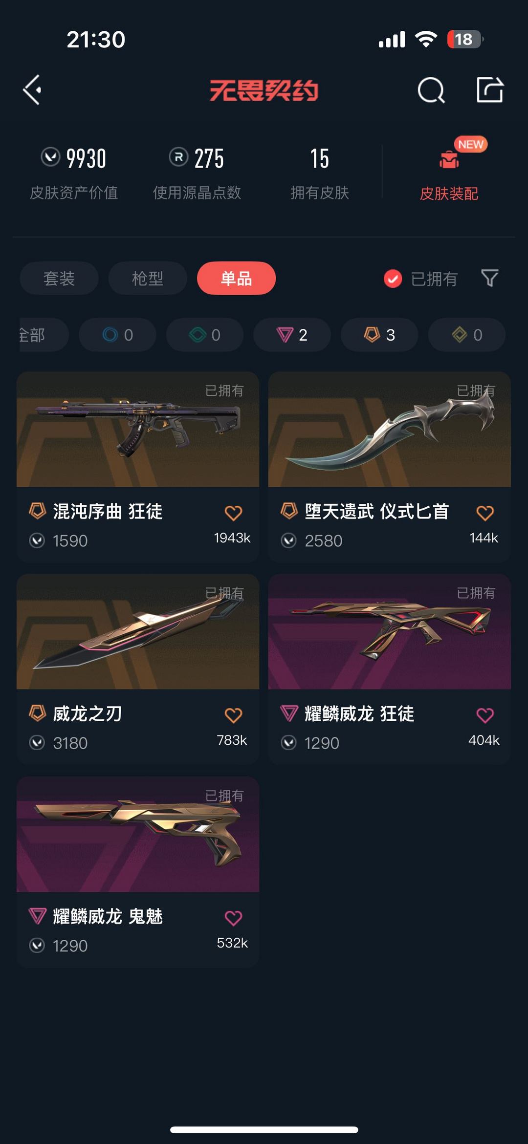 皇金一➕龙套全套➕混沌ak➕堕天遗舞刀皮还有一些通行证皮肤