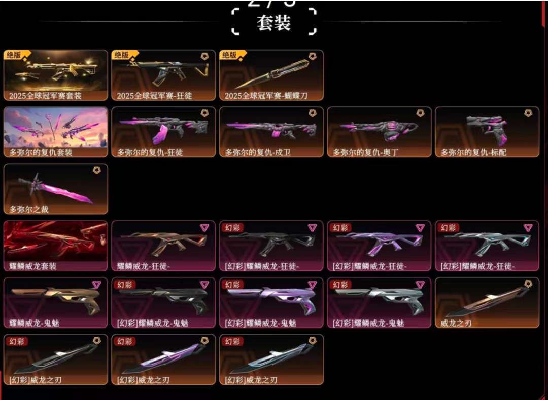 2021.2025冠军多弥尔威龙套❤️混沌序曲塑水宗末日泡泡781黯夜般若侦察幻影VCT爪刀剥皮刀