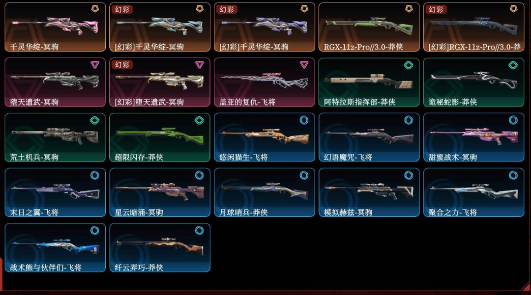 装备描述:可排位15W大库存❤25冠军套❤22冠军套❤奇点套❤千灵套❤梦之翼盖亚混沌紫金狂徒侦察幻影VCT25