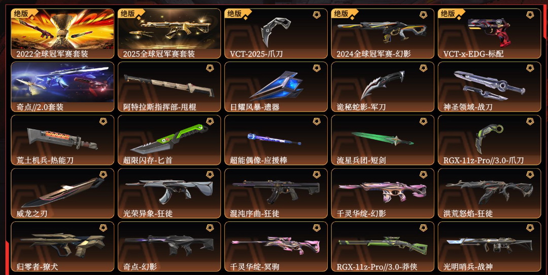 可排位15W大库存❤25冠军套❤22冠军套❤奇点套❤千灵套❤梦之翼盖亚混沌紫金狂徒侦察幻影VCT25