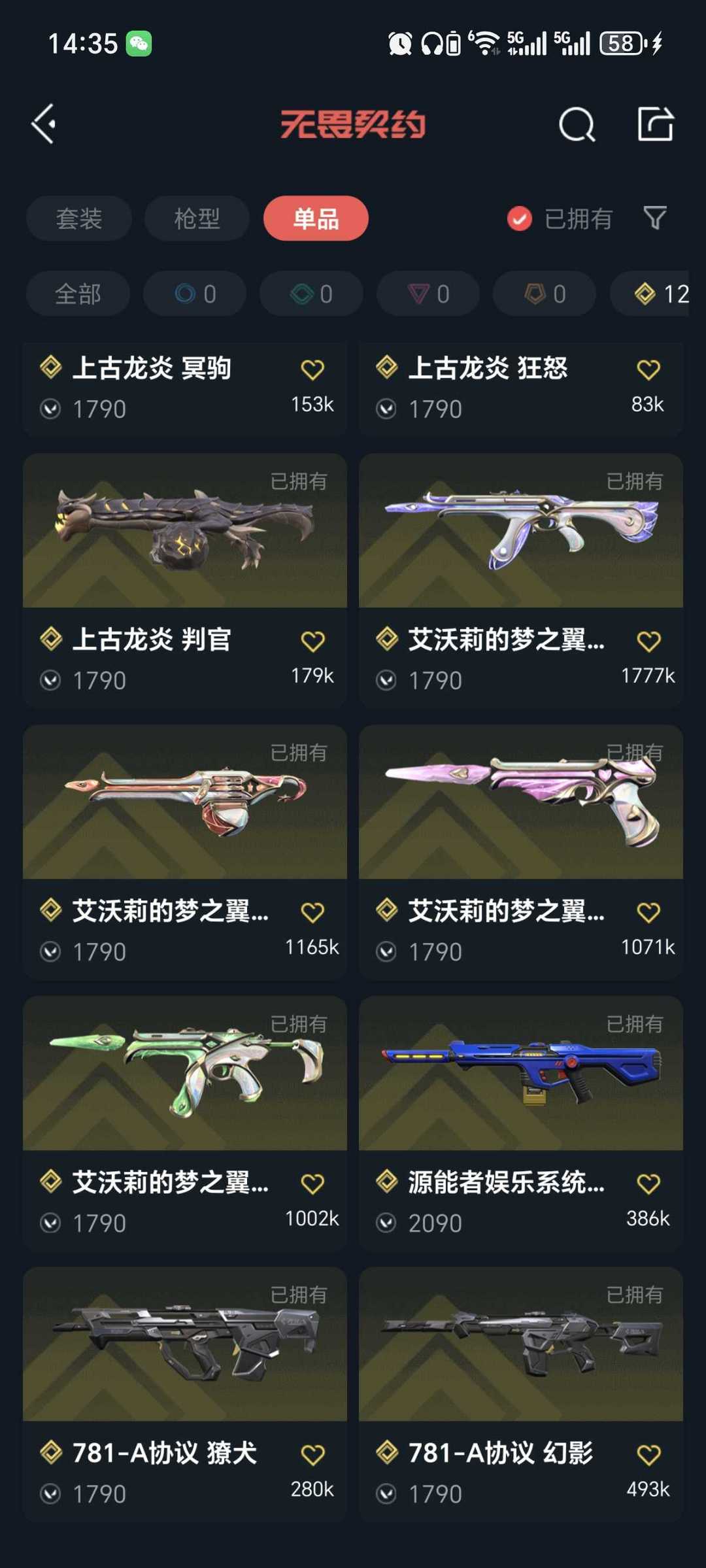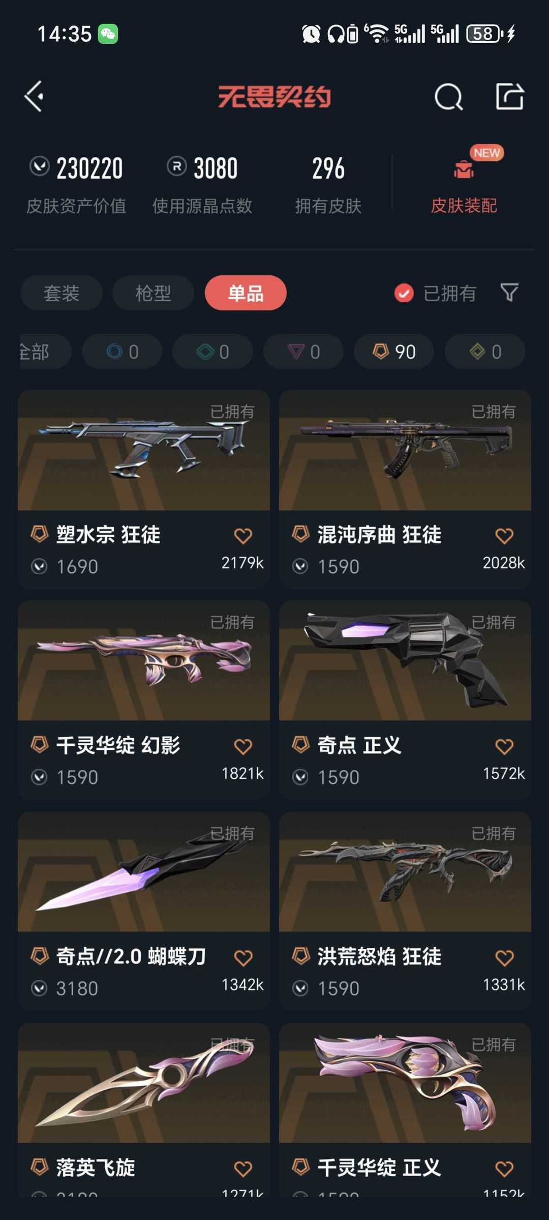 武器皮肤数量:296