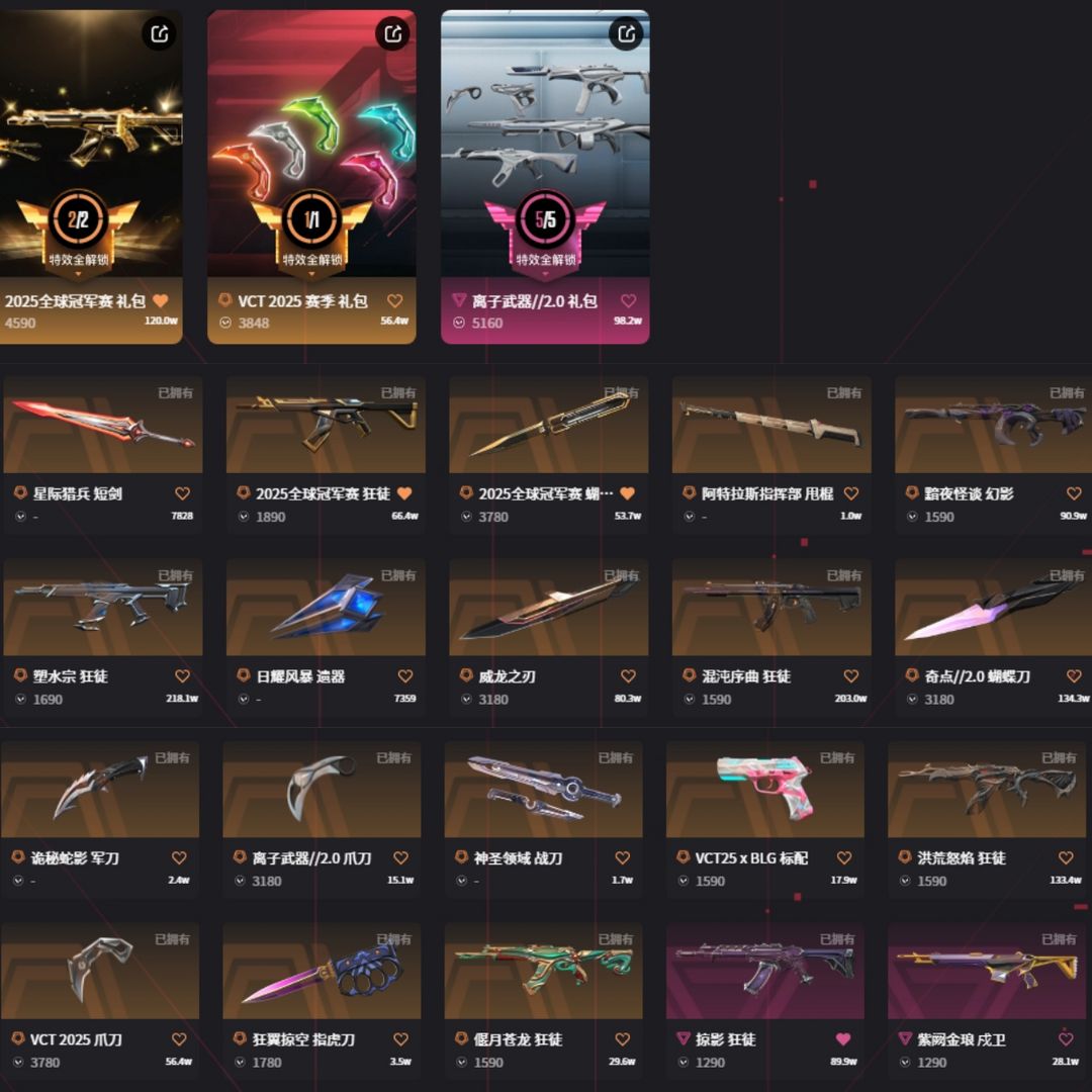 冻结秒解☆可排位☆大库存☆25套☆离子2.0套☆黯夜幻影☆塑水狂徒☆威龙之刃☆混沌狂徒☆奇点蝴蝶刀☆