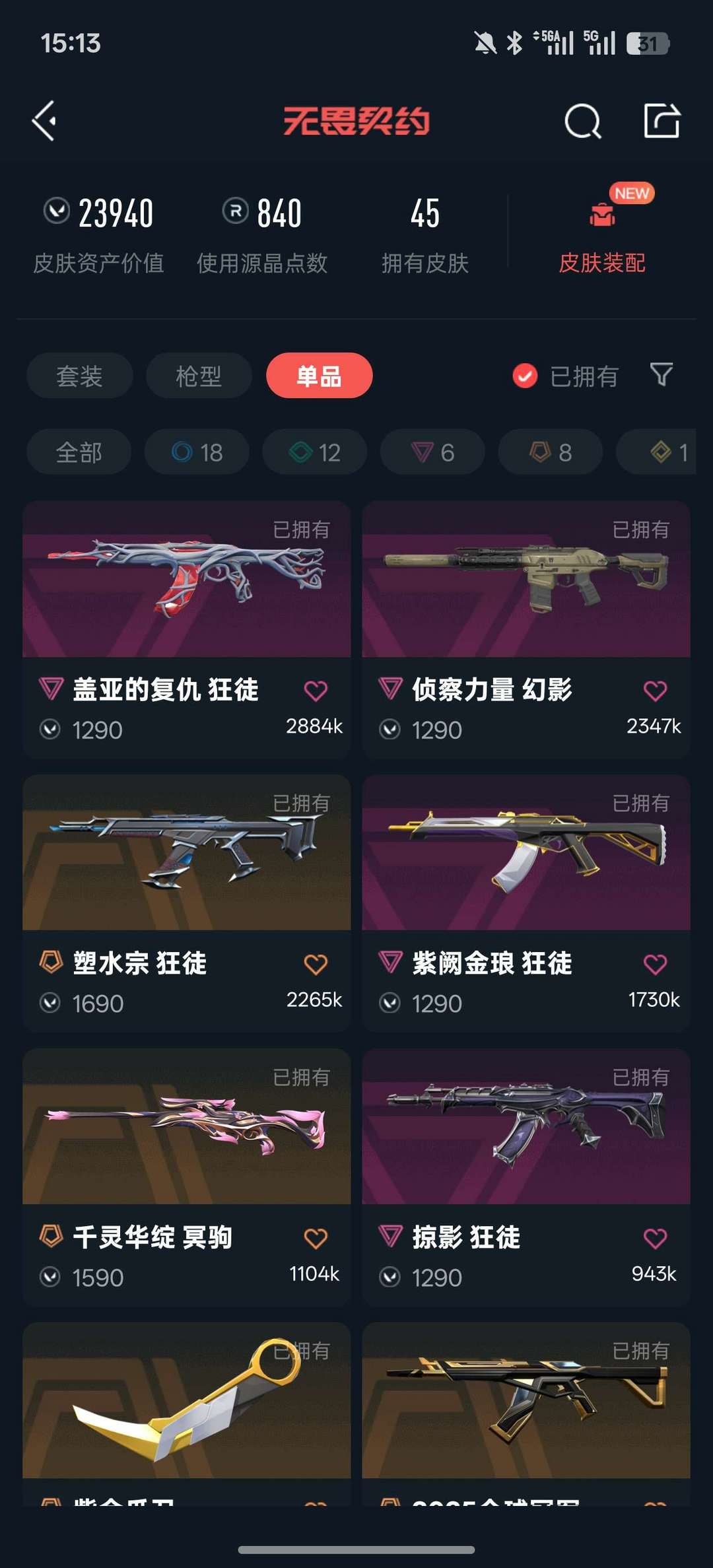 武器皮肤数量:45