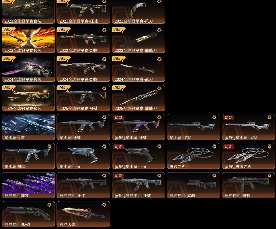 可排位45W大库存❤离火❤21.22.24.25冠军套❤三棱套悲悯刃❤混沌套❤塑水宗❤套电玩套奇点套