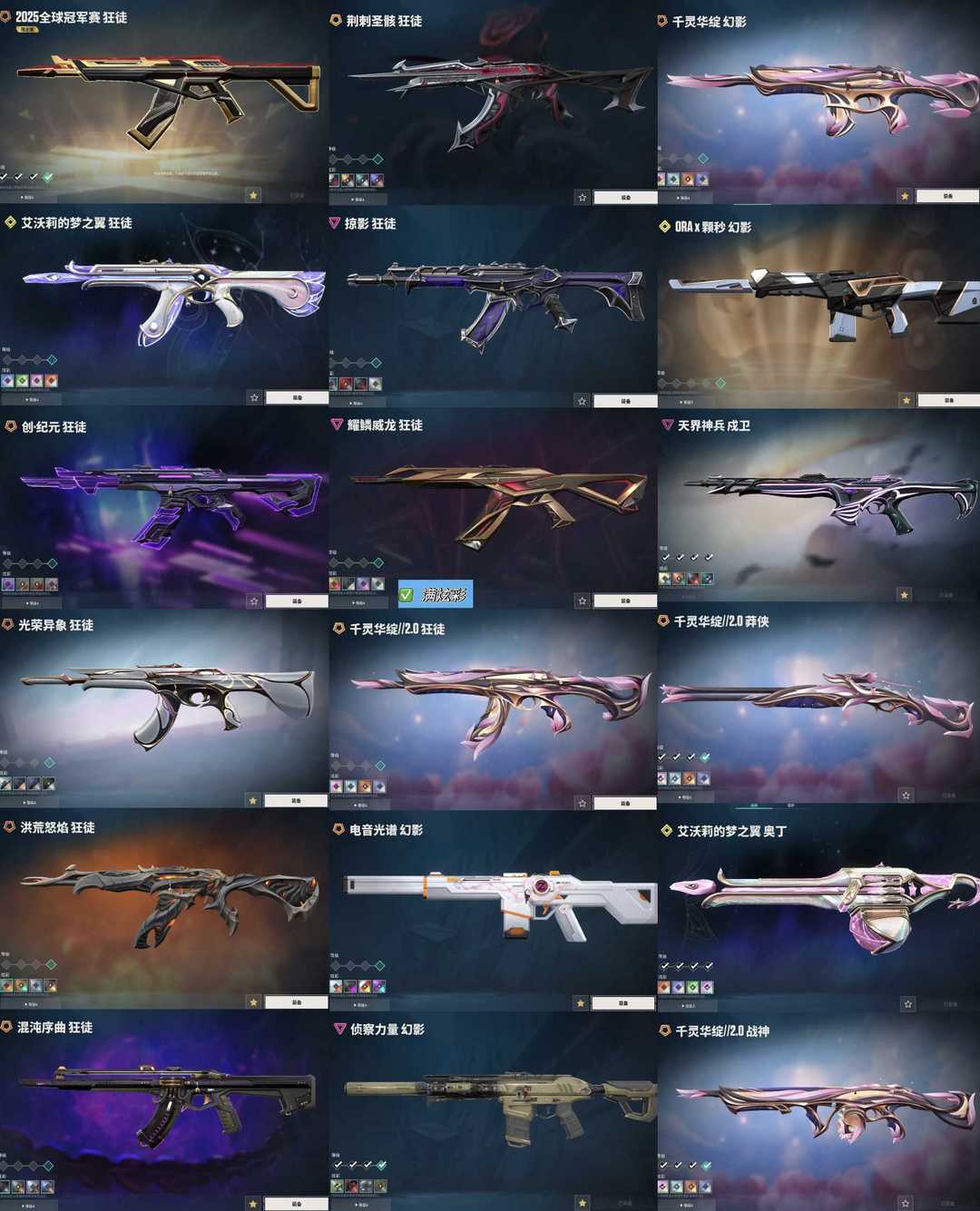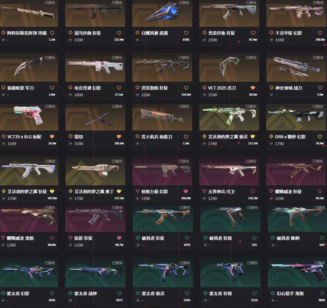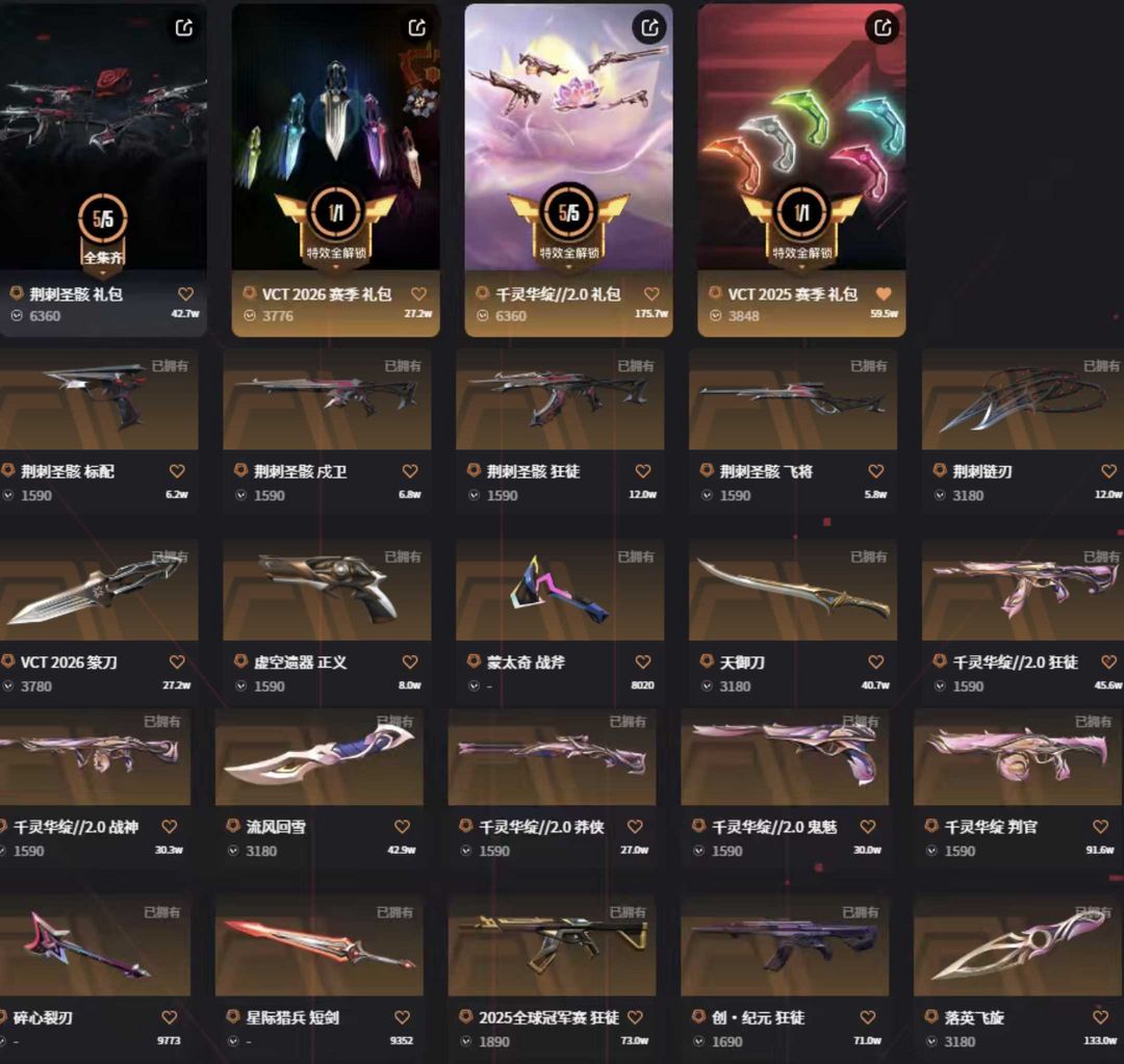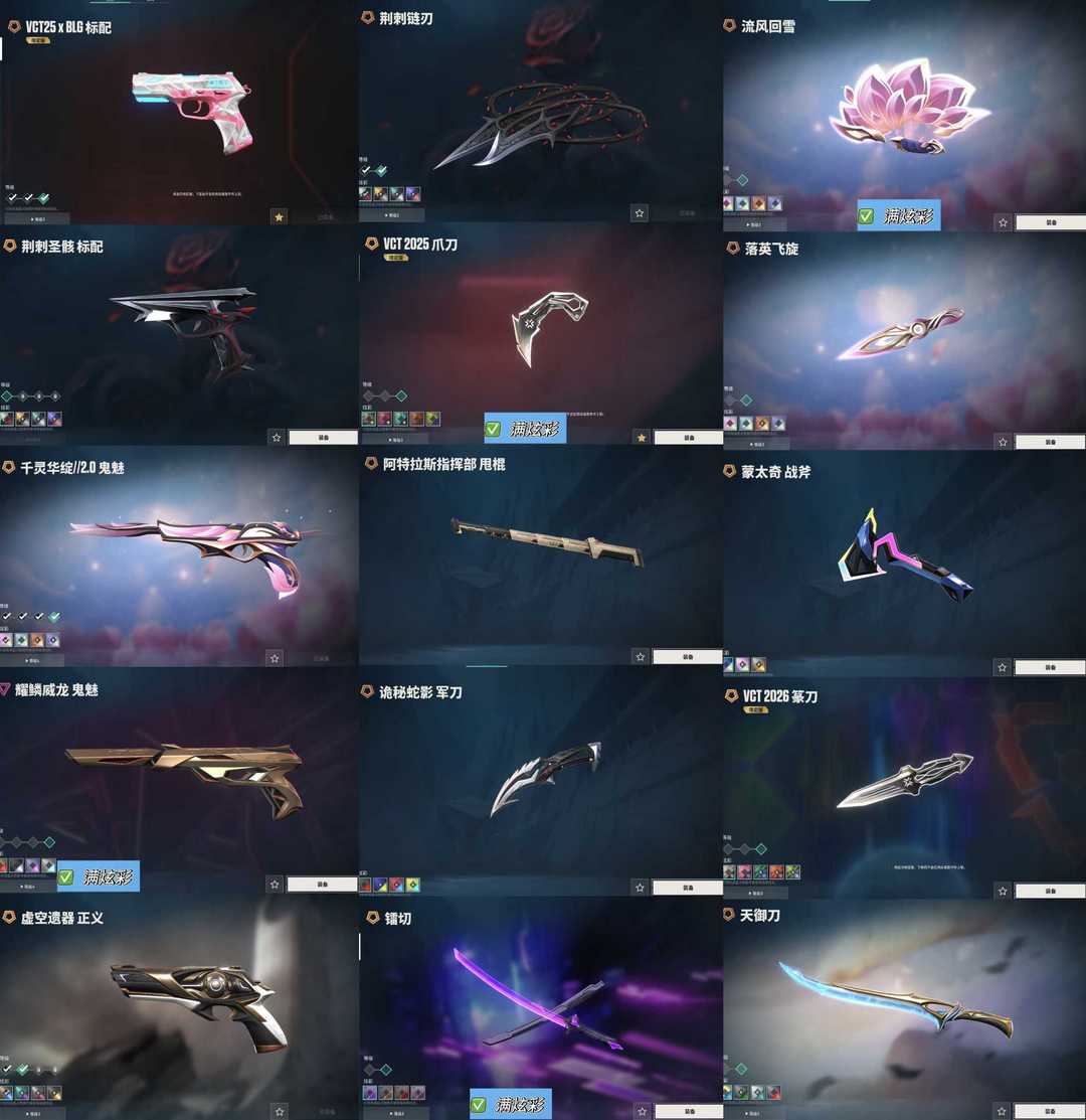 玫瑰套vct篆刀莲花2.0套✨荆棘25冠军创纪元光荣流脓混沌掠影威龙Ak✨电音侦察颗秒m4✨猫猫奥丁