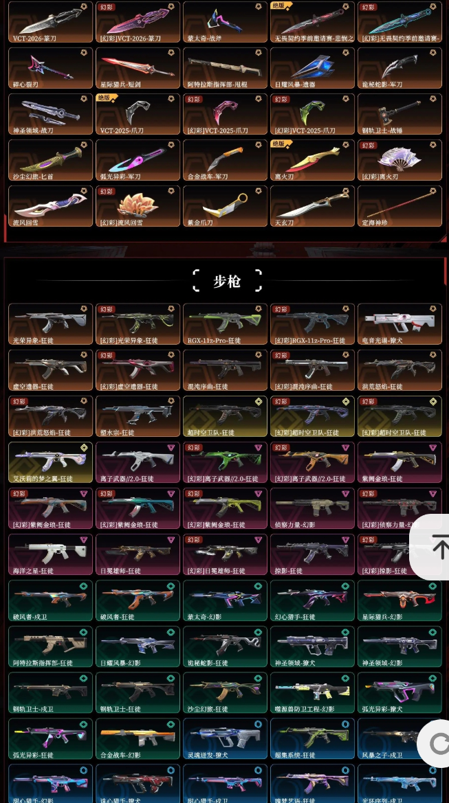 装备描述:VCT26刀离火刃VCT25刀流风回雪悲悯之刃25冠军22冠军盖亚堕天遗武滋滋特工队西部威龙之刃光荣狂徒显卡狂徒超时空狂徒掠影狂徒艾沃莉狂徒塑水宗狂徒混沌狂徒虚空狂徒电音撩犬离子狂徒日冕狂徒紫金狂徒颗秒正义