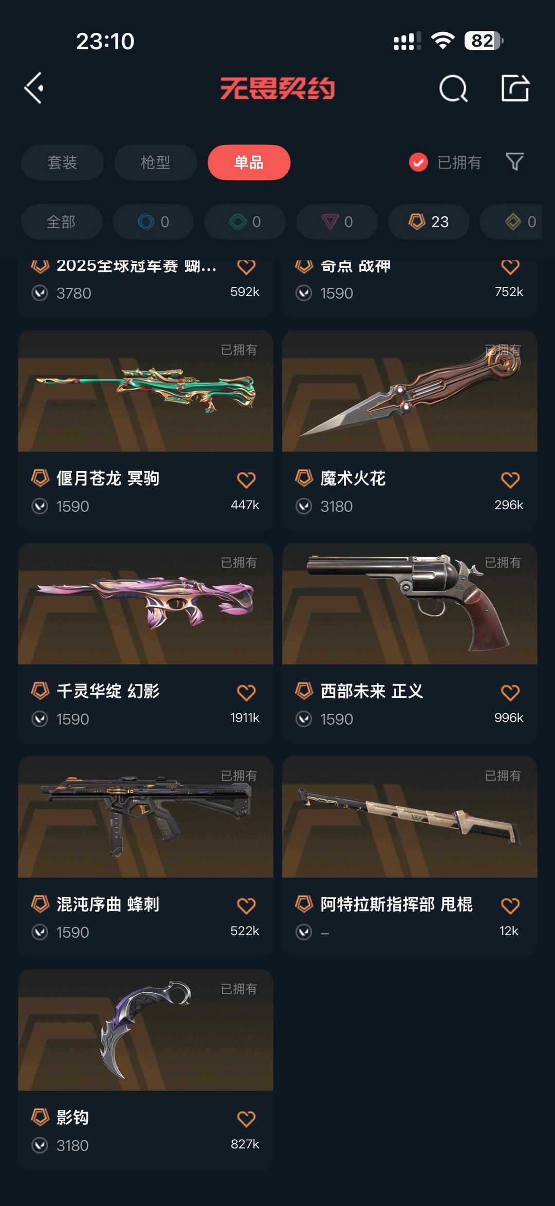 英雄29皮肤92,价值61690,使用源晶900,拥有大部分热门枪皮以及刀皮