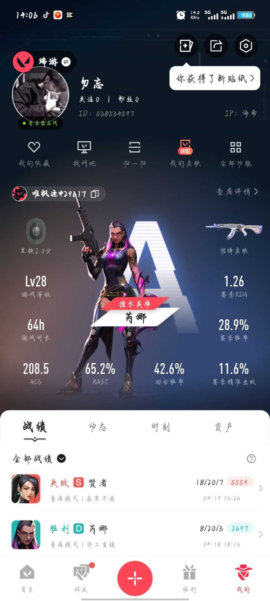 06唯枫逢,有英雄,有皮肤,可排,可匹配,感谢老板使用