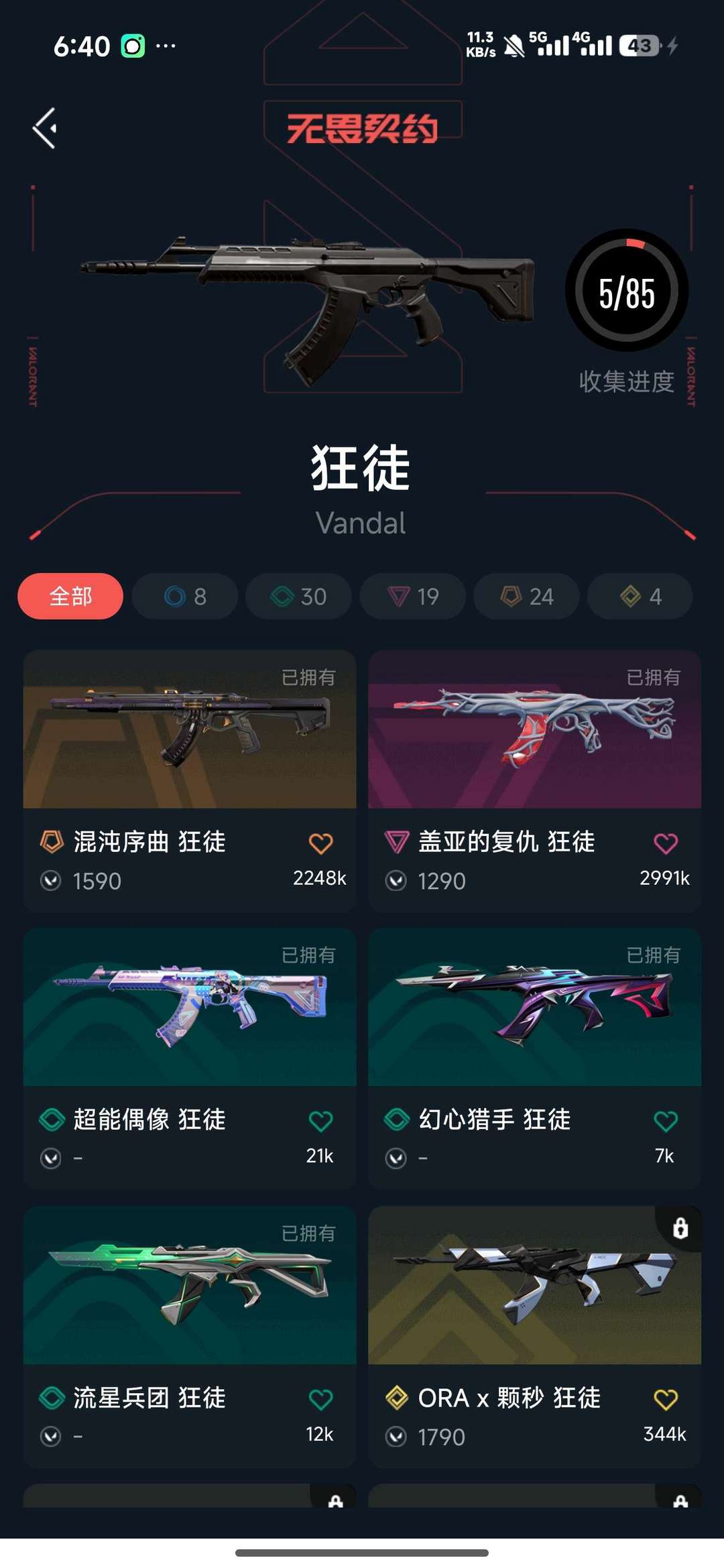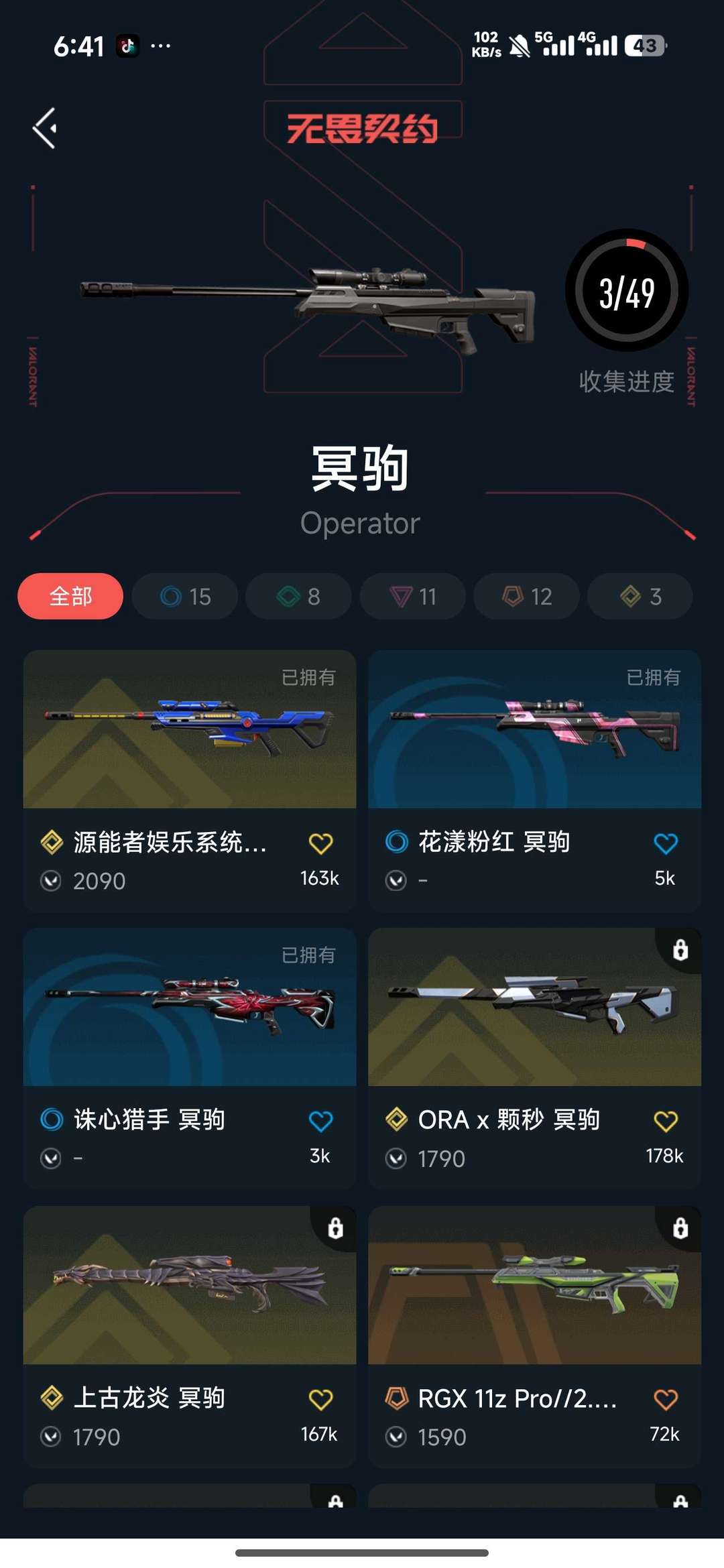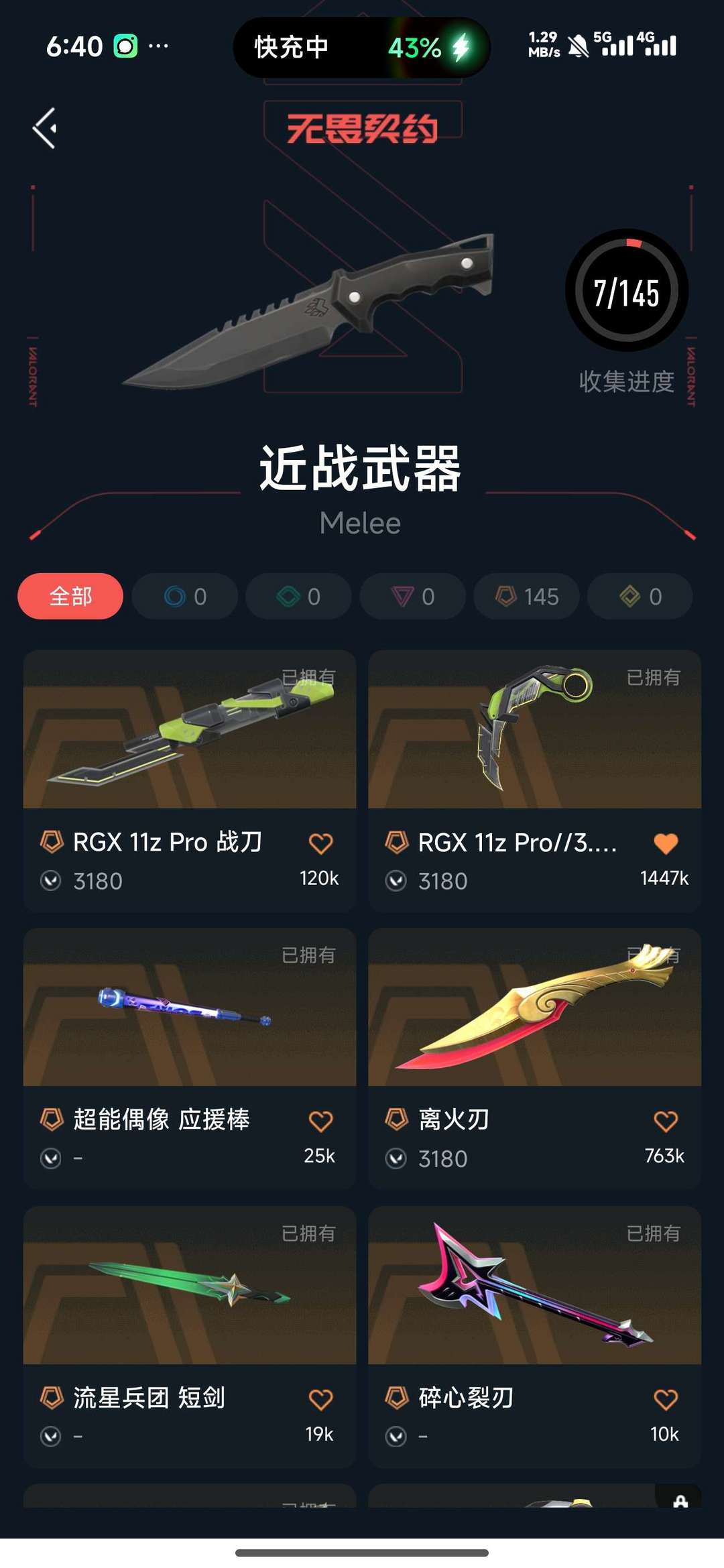 7刀皮 67枪皮 热门枪皮2狂徒3幻影2正义1冥驹1标配1獠犬1莽侠
