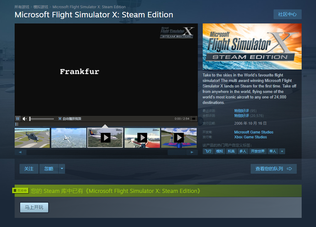 装备描述:在世界上最受欢迎的飞行模拟器中飞向天空!屡获殊荣的 Microsoft Flight Simulator X 首次登陆 Steam。从世界任何地方起飞,驾驶世界上最具标志性的飞机飞往 24,000 个目的地中的任何一个。