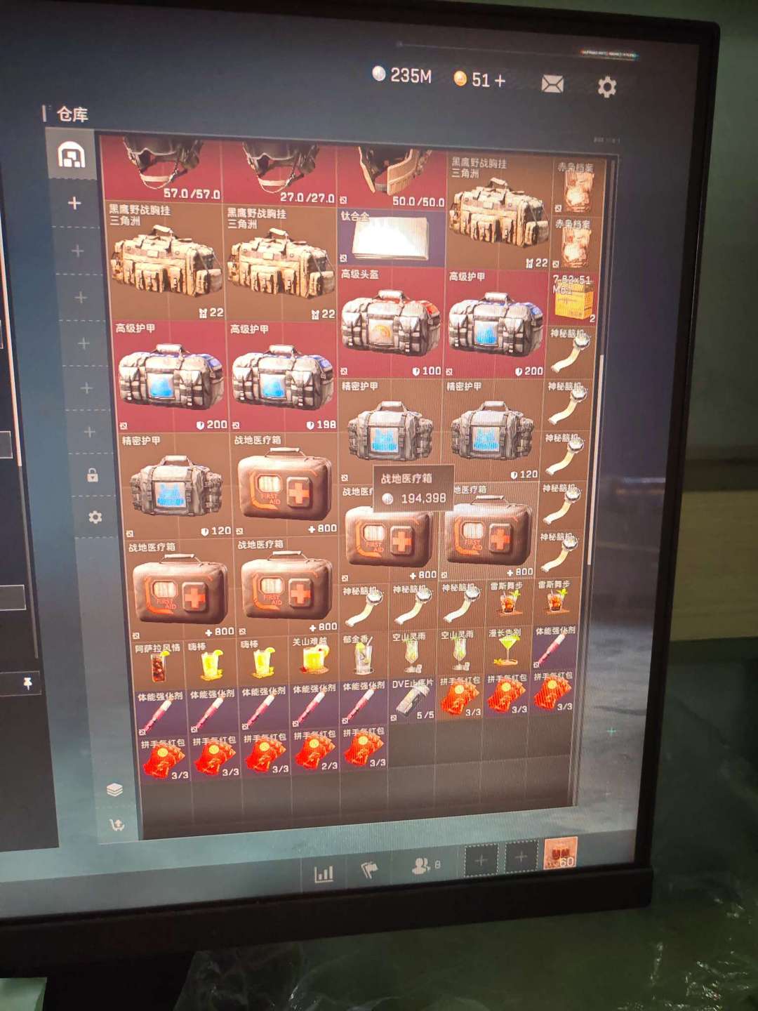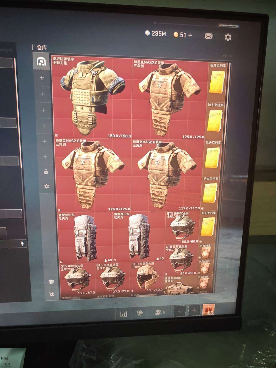 纯币235m出租,有六套,红甲修,金血包,有aw全装包,m7全装包,m14全装包定制卷若干均可使用