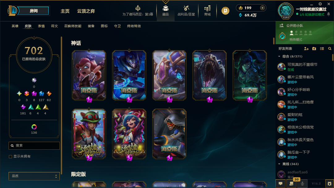 顶级土豪专用700皮肤✅龙的传人✨奥斯曼大帝✅摄魂薇恩✨银龙裁决✅广寒仙子✨各种限定皮肤
