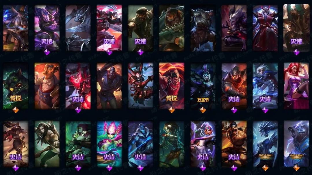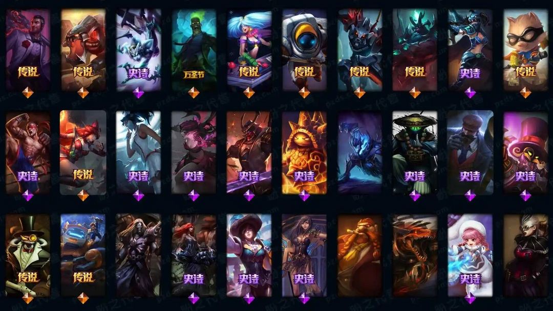 1923皮肤〓可排位妹子号白银〓全英雄〓34神话〓19臻彩214炫彩〓生肖套〓至臻伊泽寡妇海克斯多神