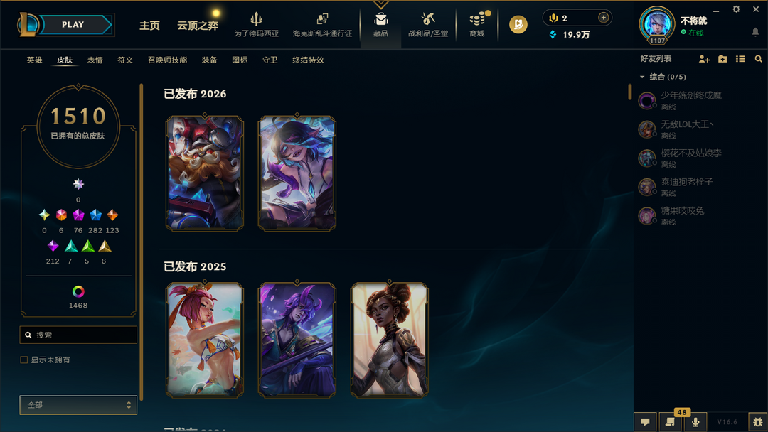 网一顶级1631皮2123炫可排位⚡96至臻神话⚡神话永恩剑魔卡莎阿狸⚡所有冠军全套⚡云顶9神话