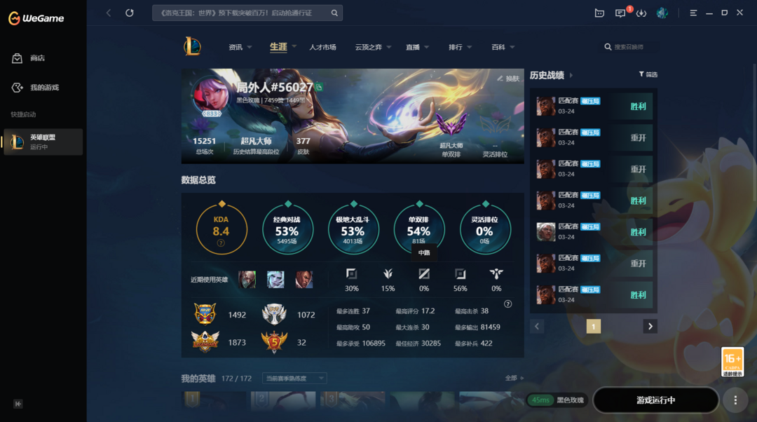 限制: 撤单率<50%才可租用此帐号英雄: 172