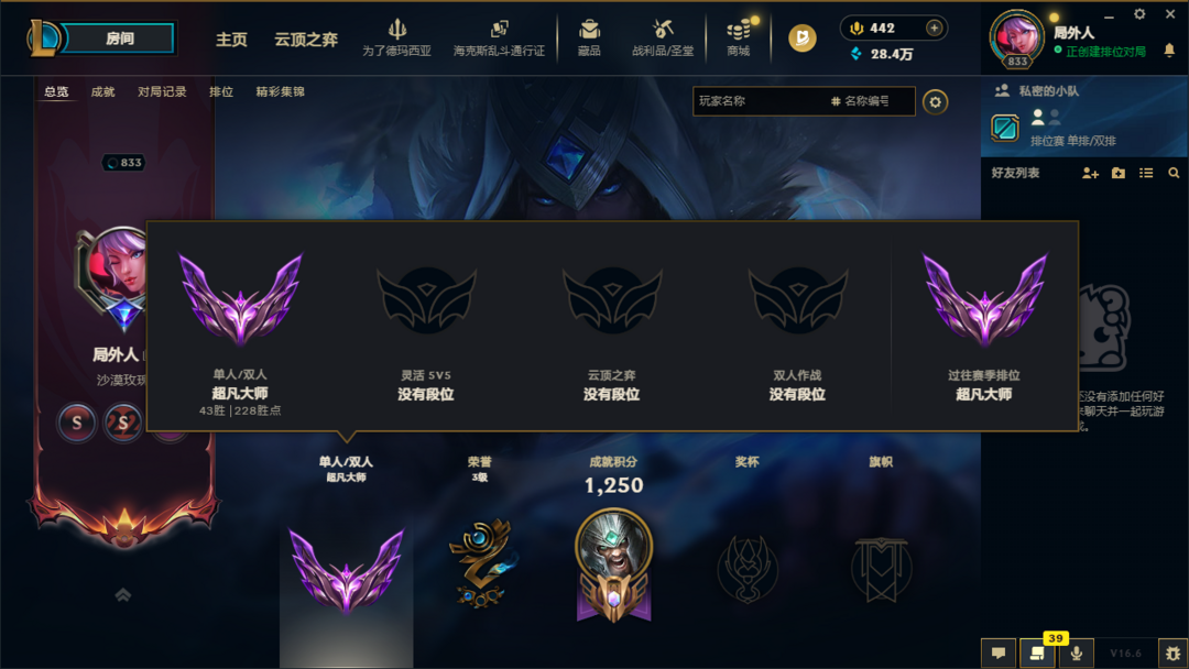 段位:833级 超凡大师