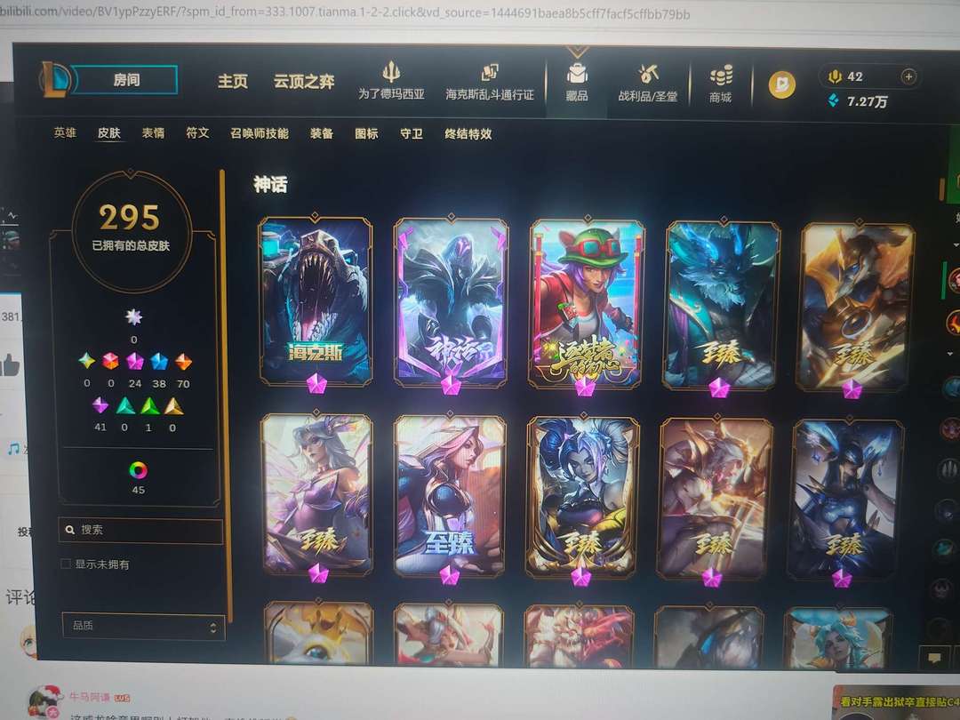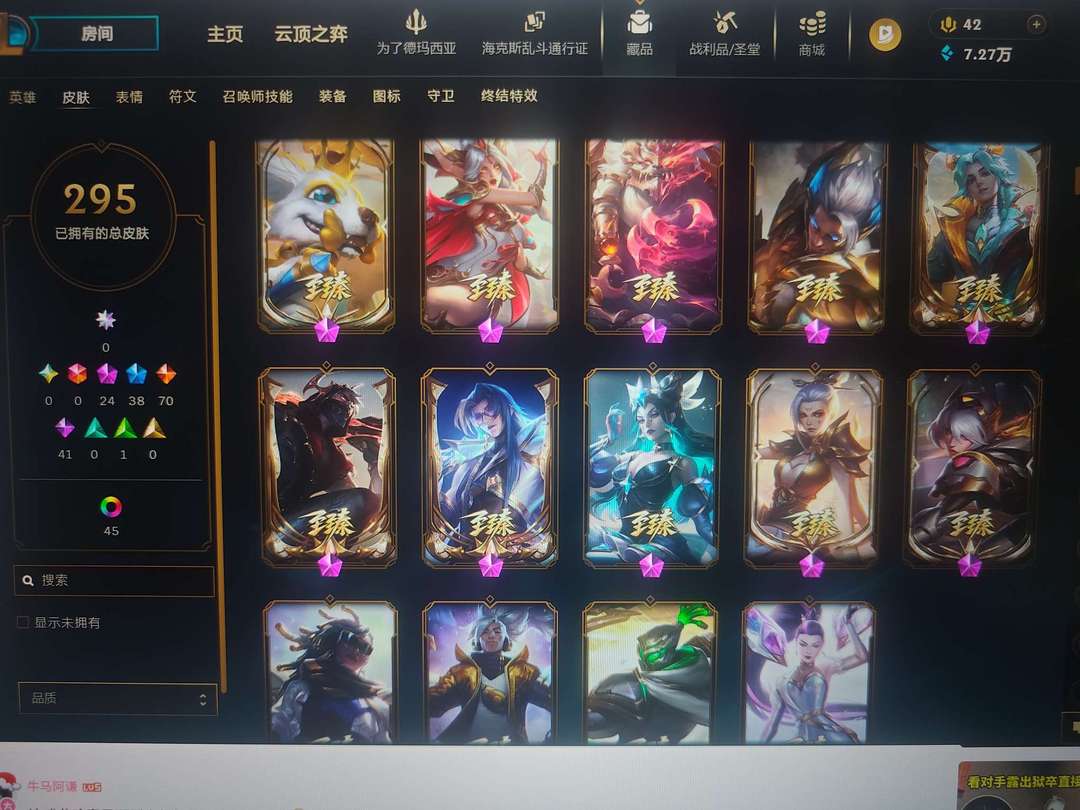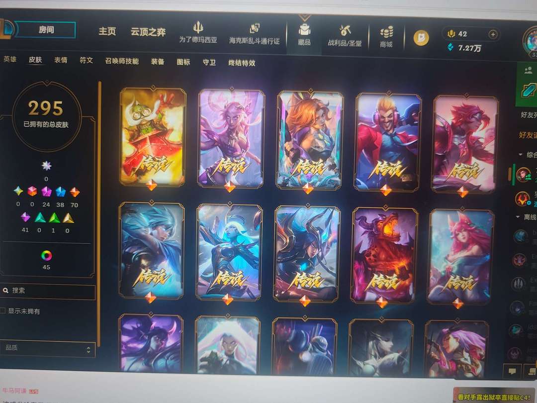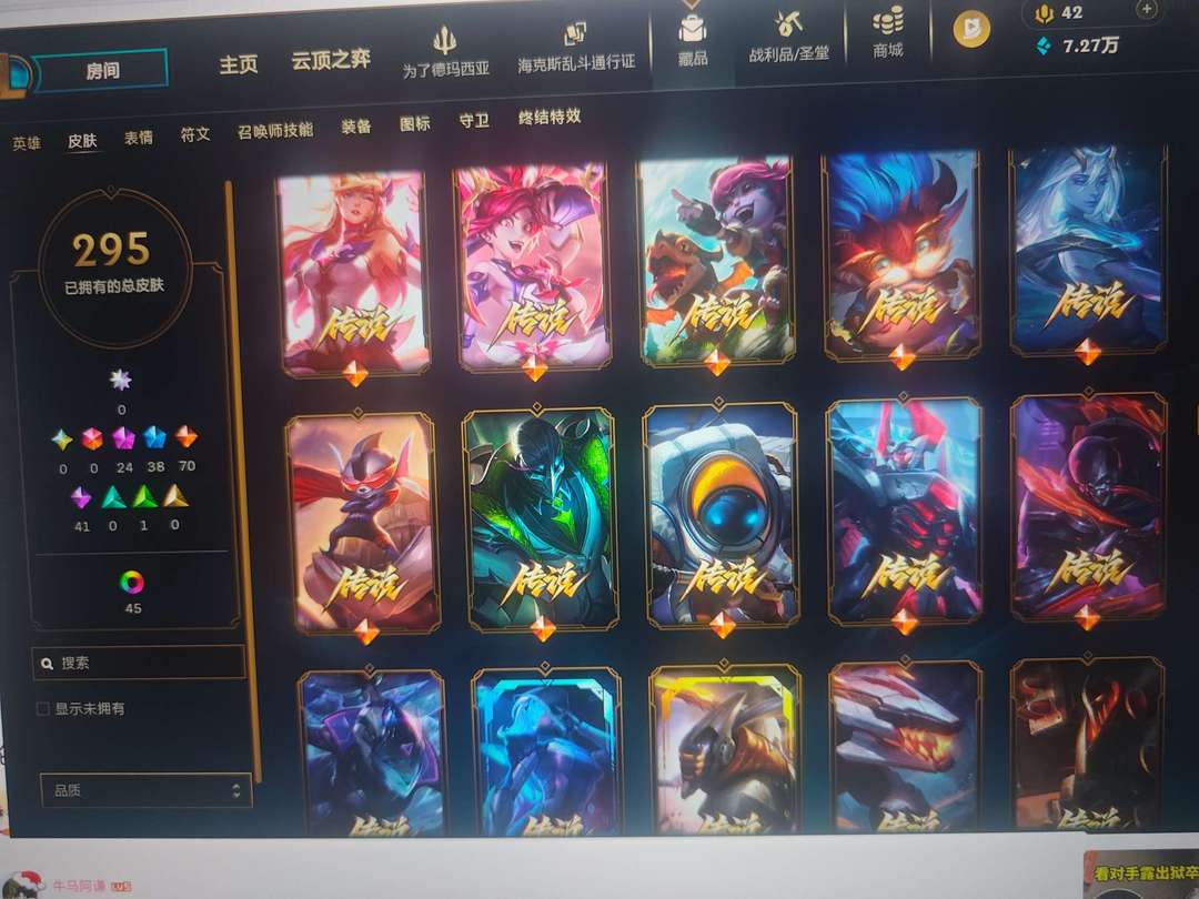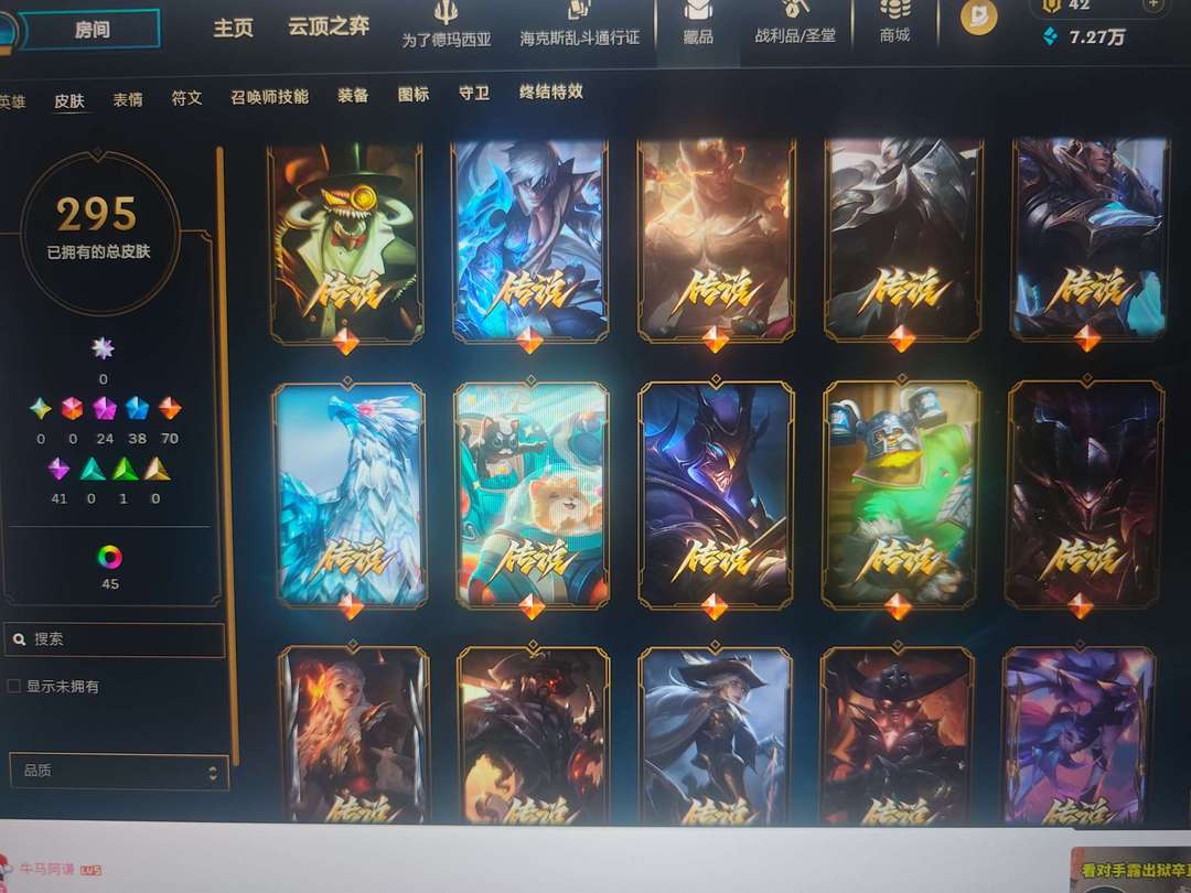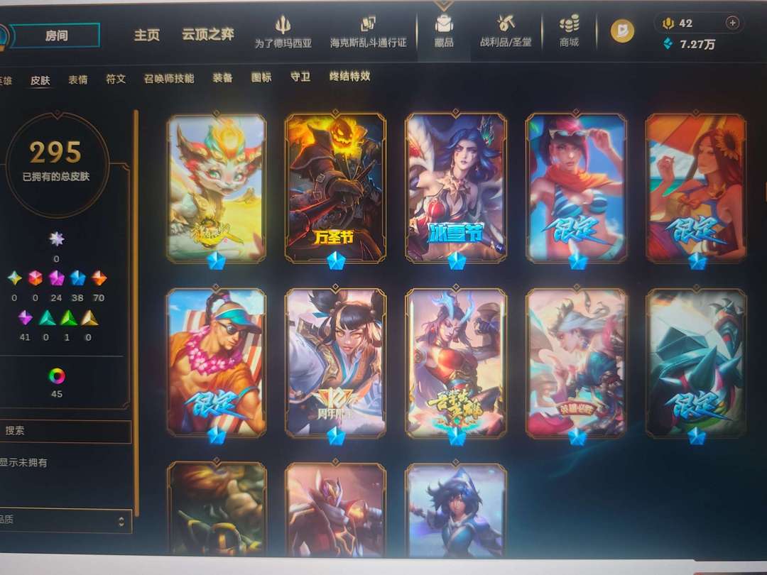 皮城警备全英雄295皮肤24神话38限定70传说