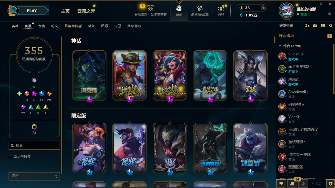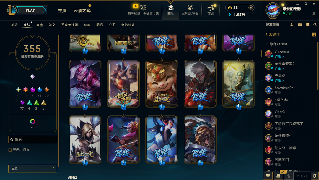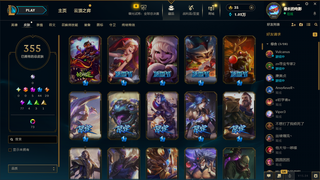 500皮肤全英雄/可排位/摄魂使者薇恩/胜利全套/泳池派对李青/灌篮高手/黎明使者/龙年小火龙