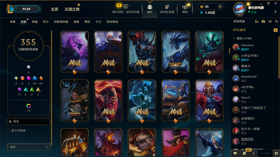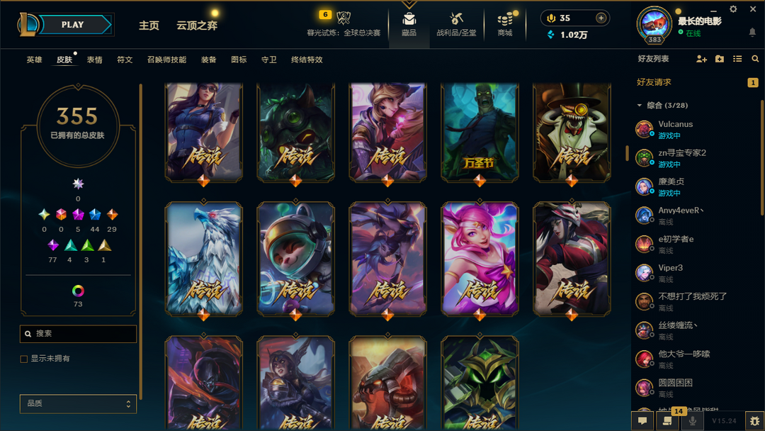 装备描述:500皮肤全英雄/可排位/摄魂使者薇恩/胜利全套/泳池派对李青/灌篮高手/黎明使者/龙年小火龙