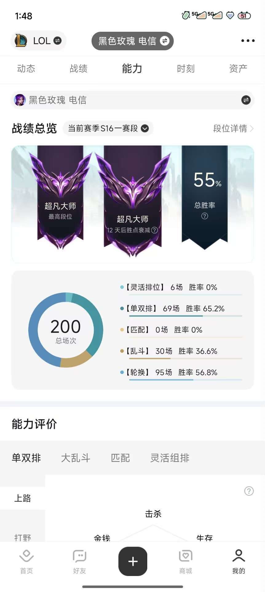 大师号不可排位❤️黑色玫瑰❤️带妹专用❤️已验号