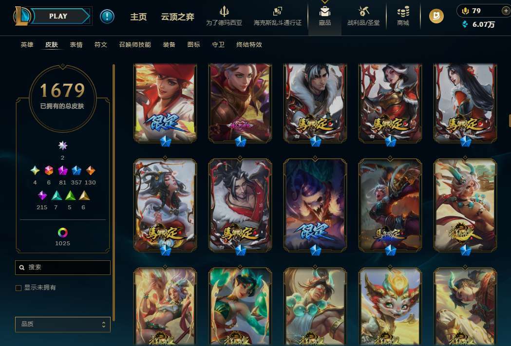 黑色玫瑰⚡真实1679最新皮⚡三档签名卡莎阿狸⚡圣堂⚡全年限⚡限定至臻⚡稀有神话⚡超多臻彩⚡