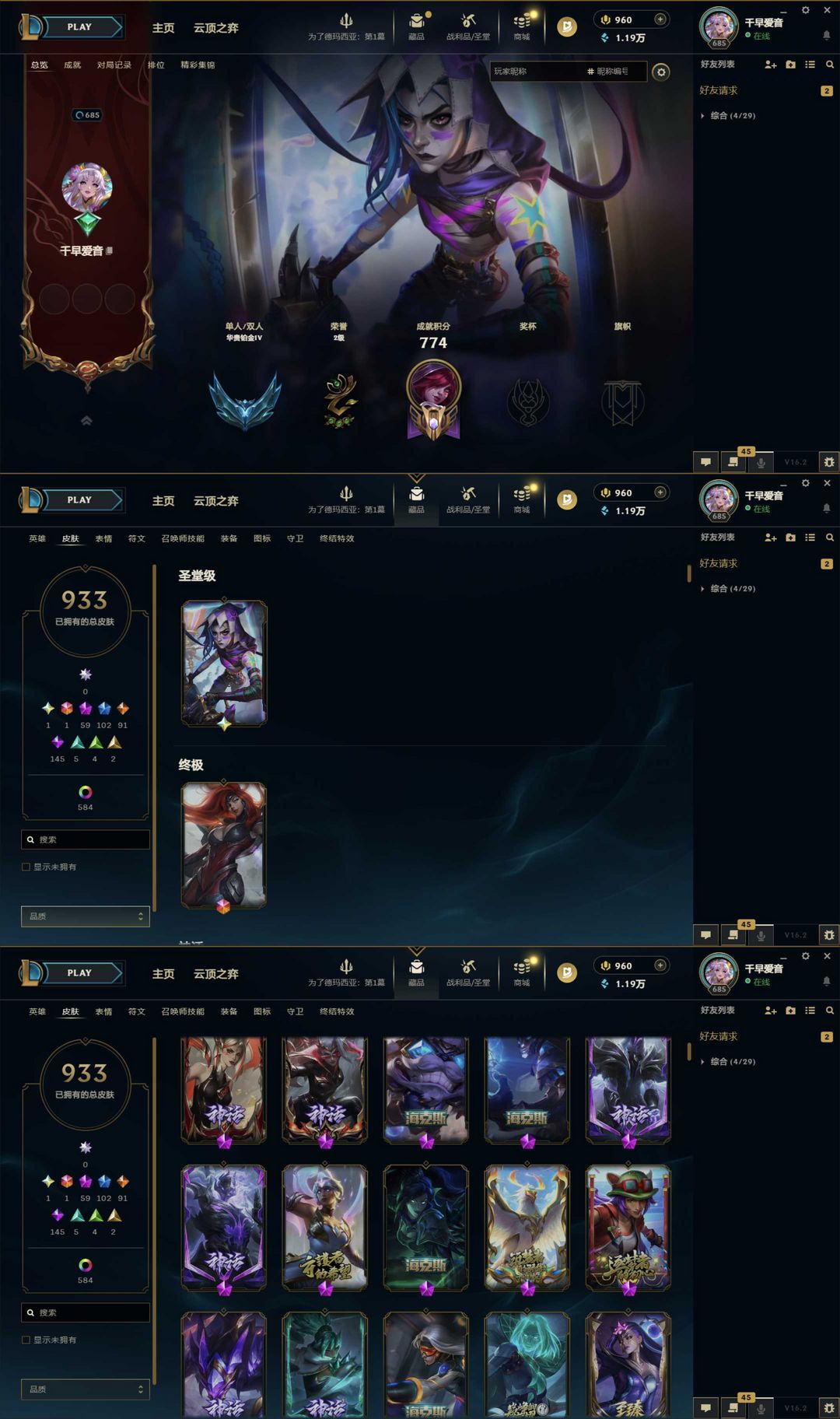 1000p圣堂金克斯神王至高天♥️云顶神话灵魂莲华阿狸发条斗魂格温神话棋盘水云天池