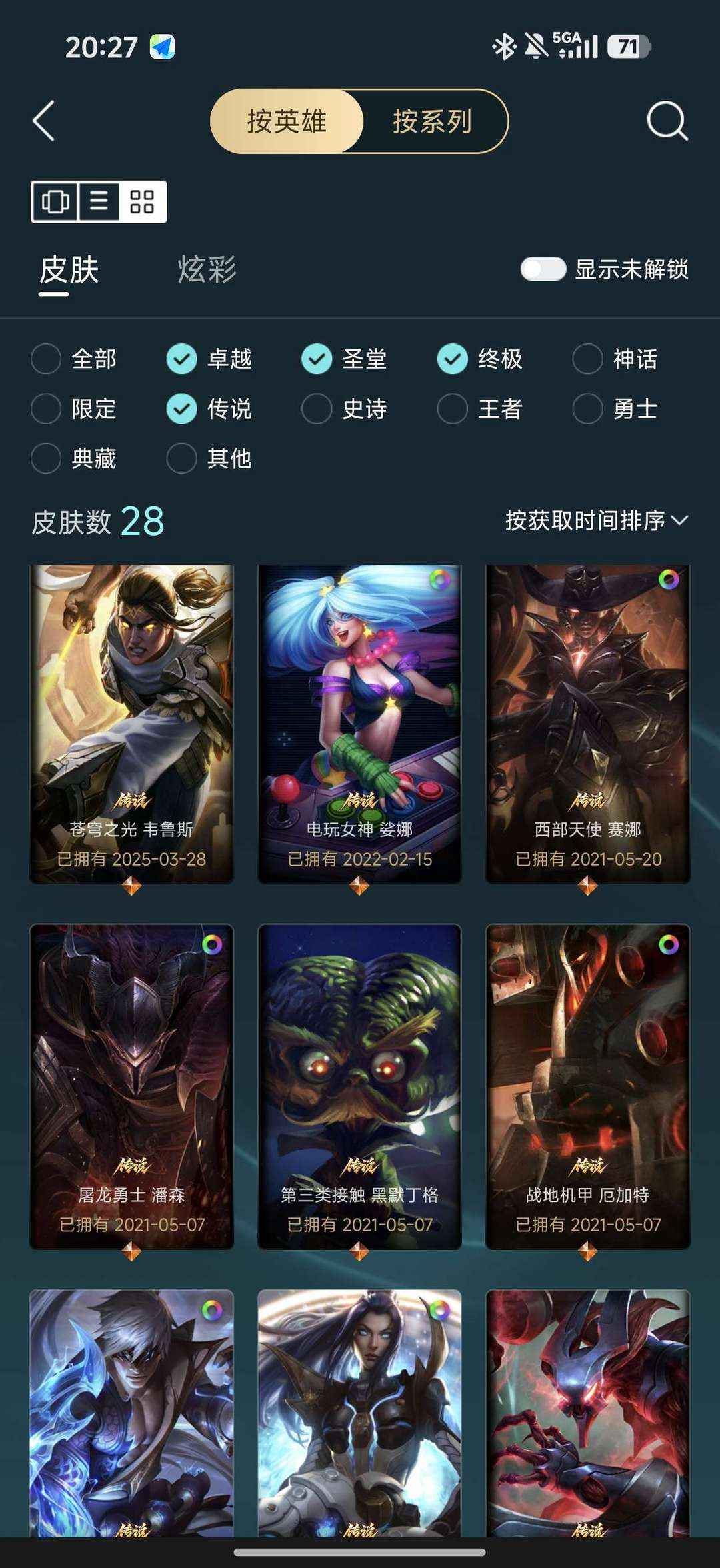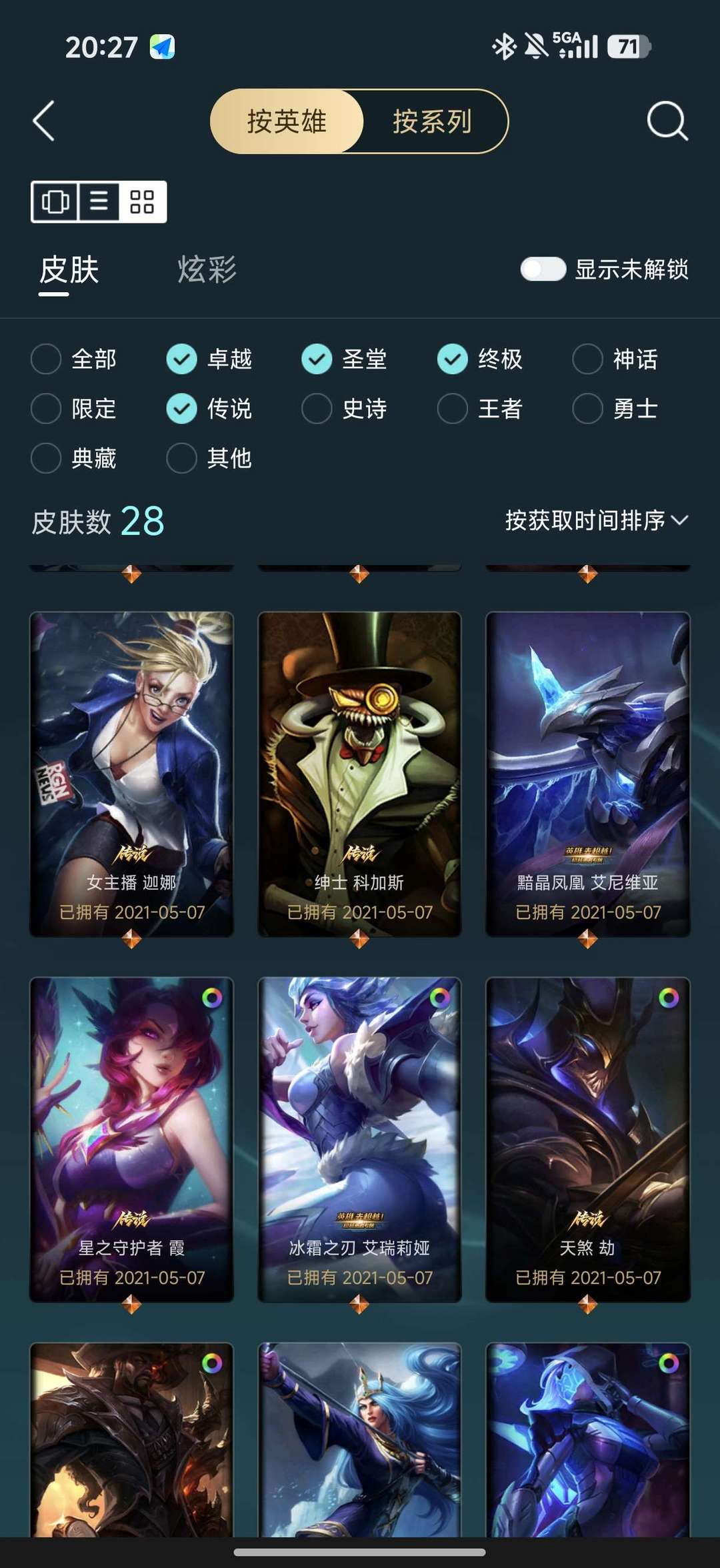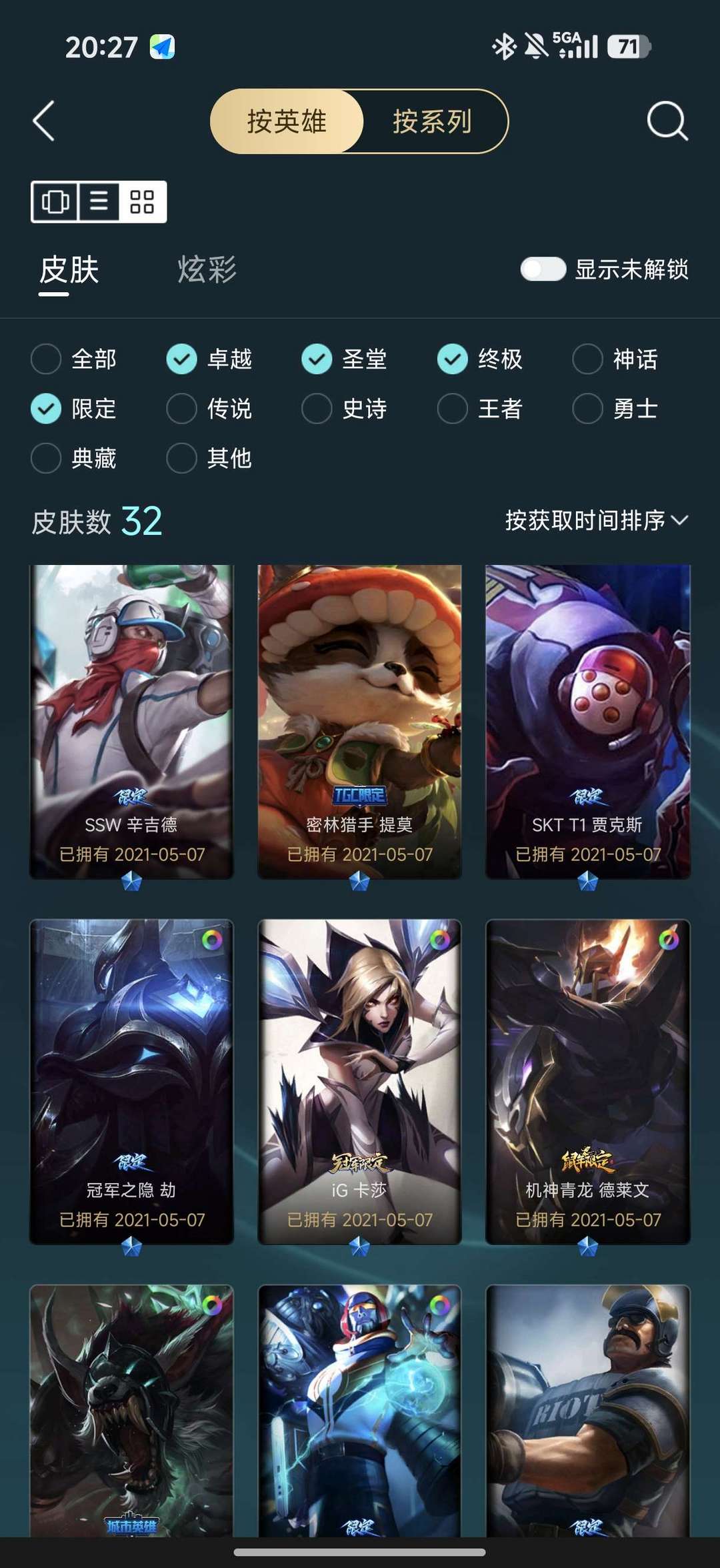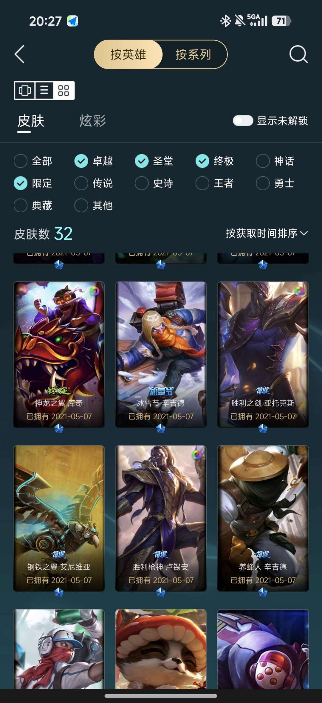 一至臻56炫彩12神话32限定28传说53史诗256皮肤,全是精品皮。145英雄