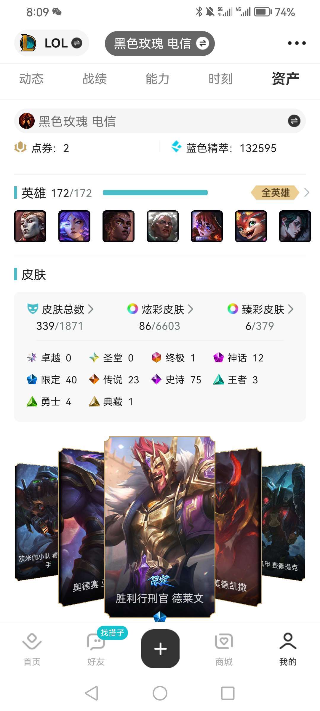 可排位。全英雄,基本每个英雄都有皮肤。
