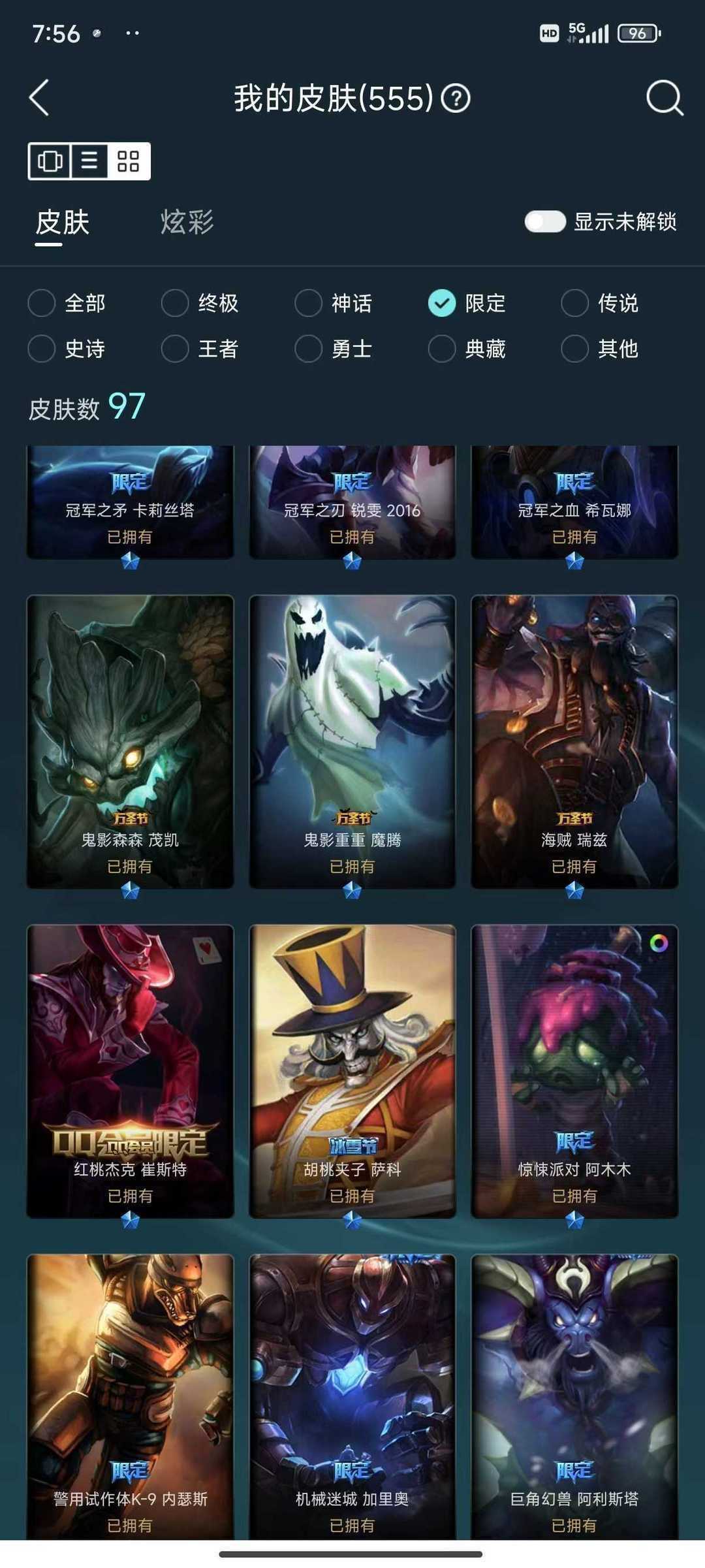 无畏先锋❤️555皮可排位❤️97限定❤️多冠军定制皮❤️终极EZ❤️更多请看截图