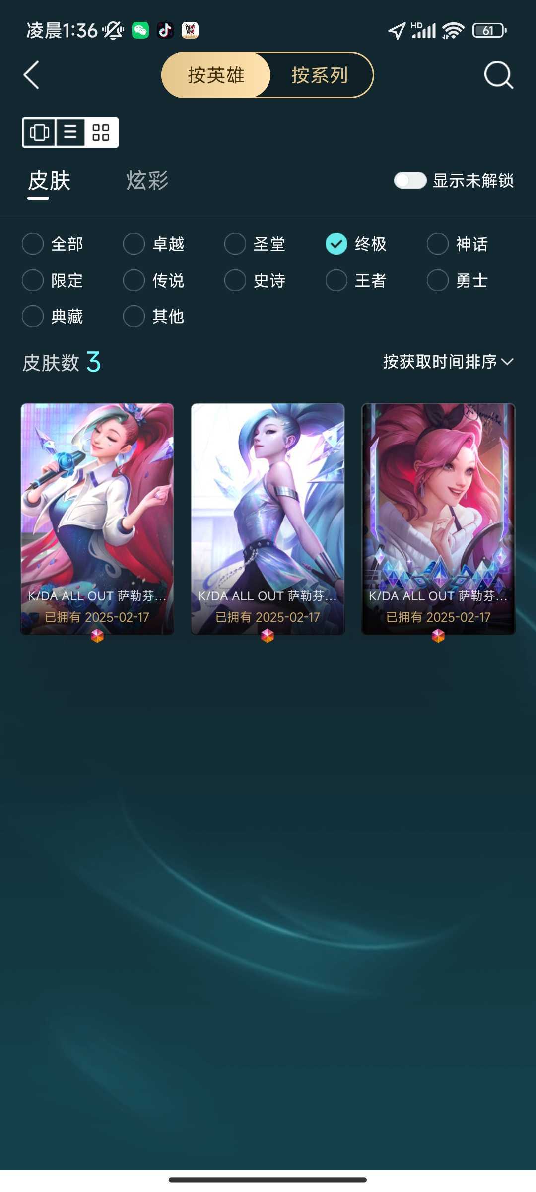 装备描述:臻彩:西部牛仔卢锡安,uzi薇恩 神话劫,至臻:最高清算诺手,玉剑劫,灵魂莲华拉克丝,至高天天使 西部牛仔永恩,kda萨勒芬妮