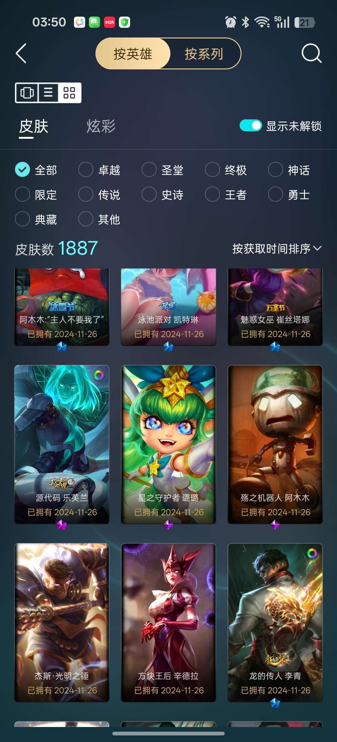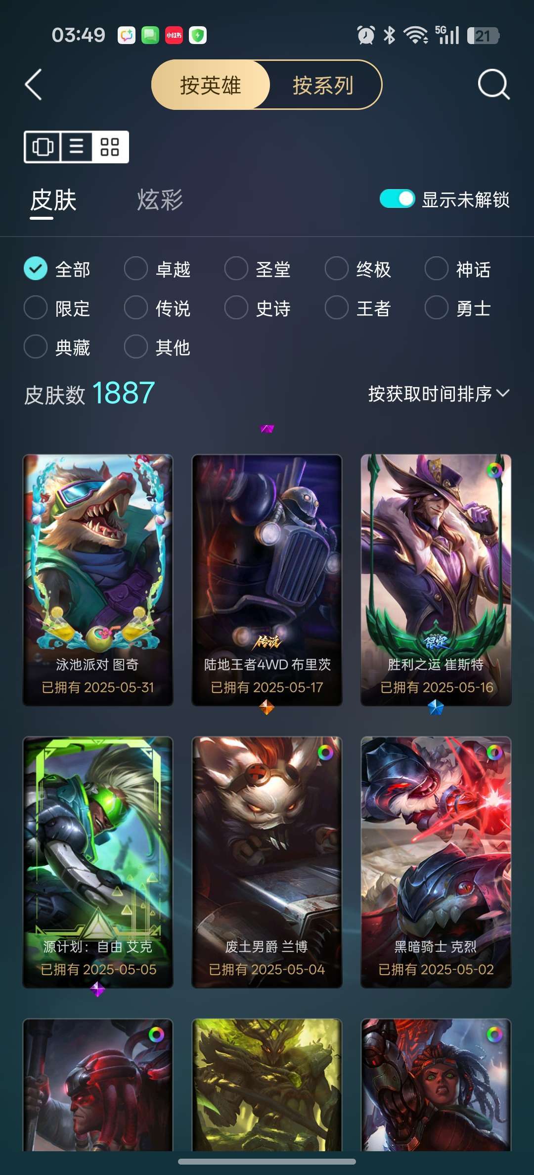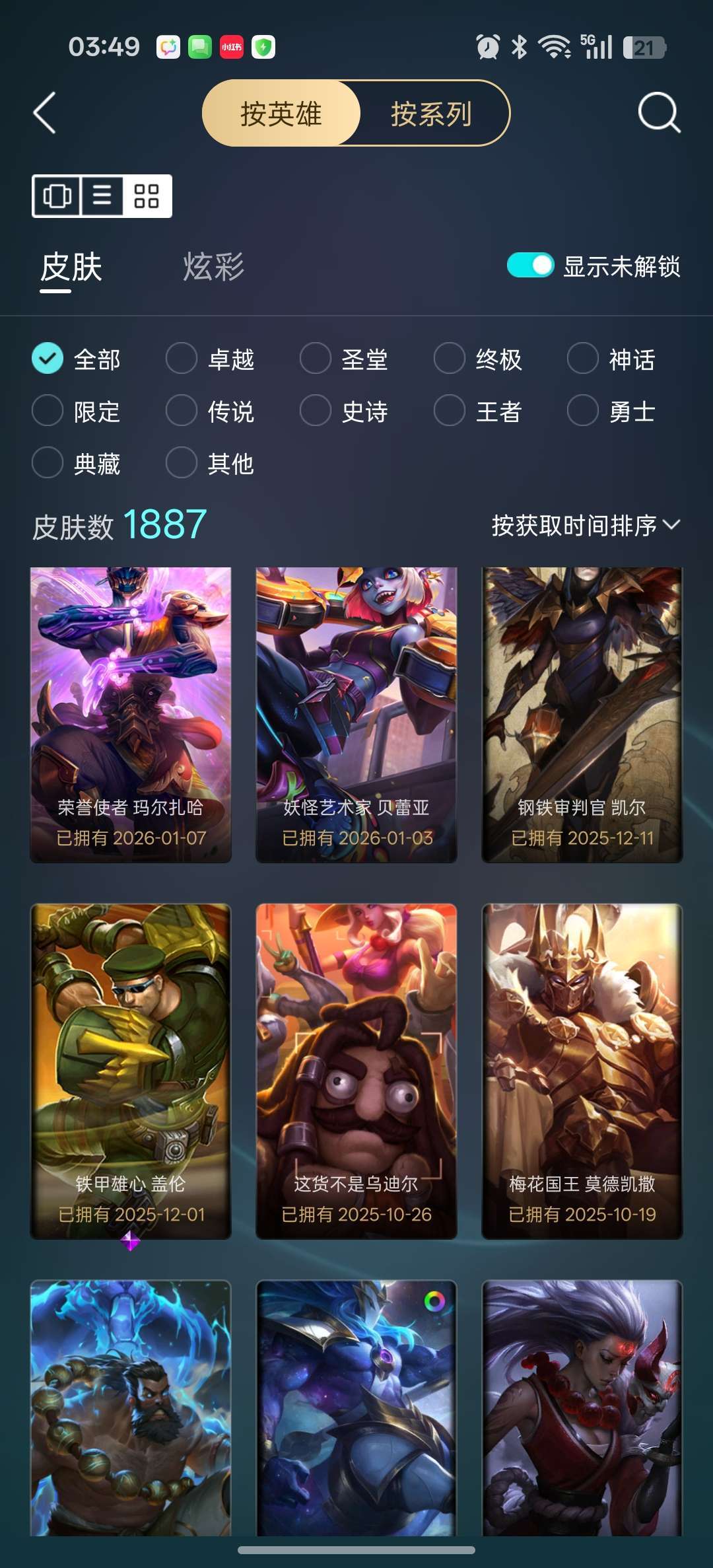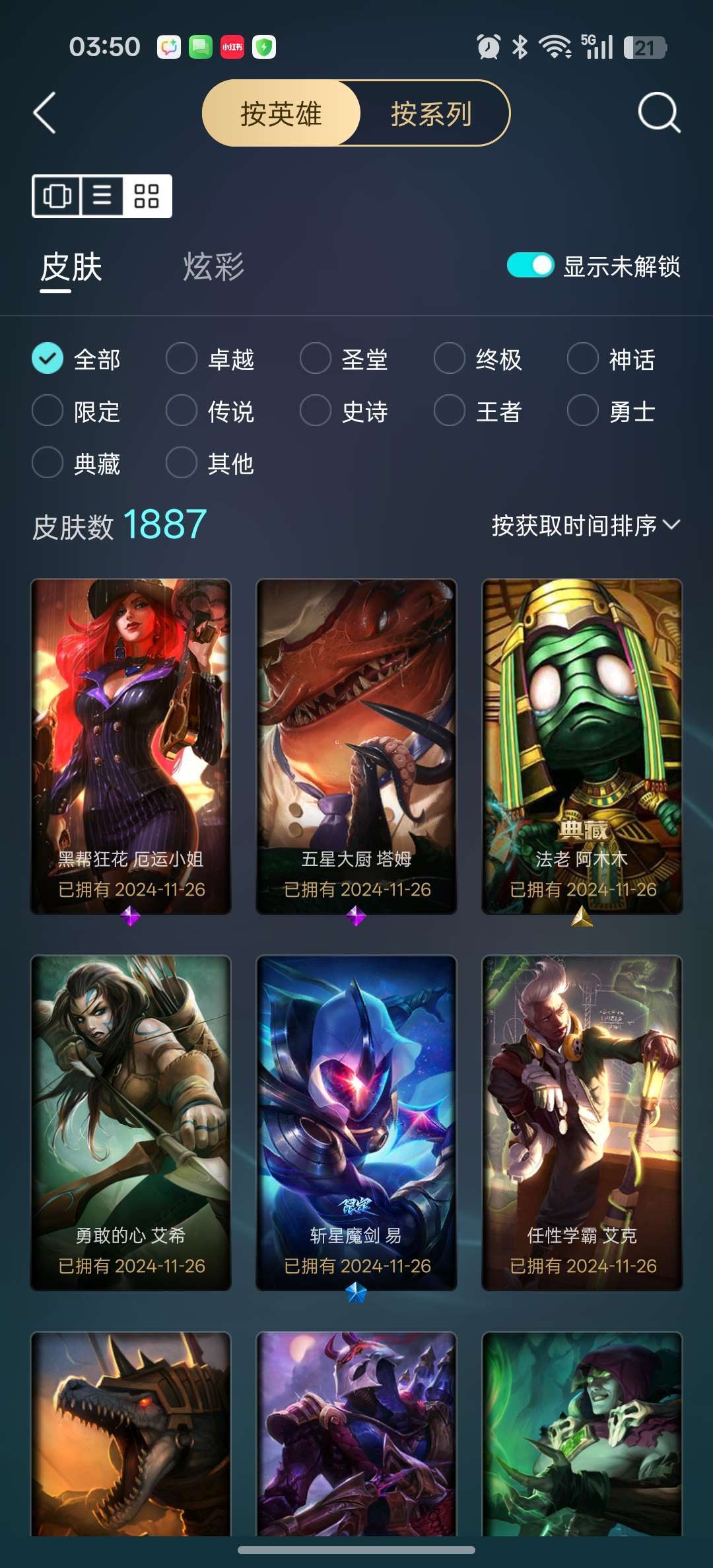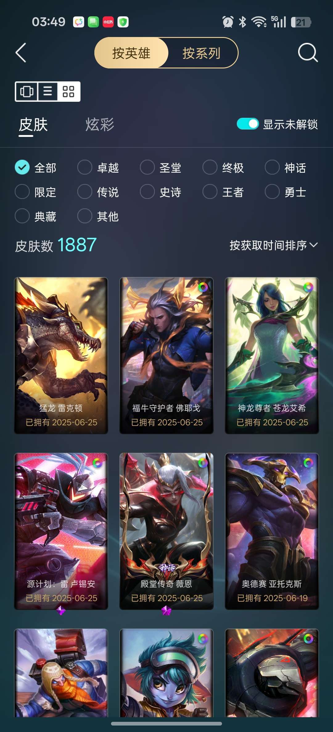 龙瞎龙刀各种年限+殿堂VN+剑圣斩星魔剑+各种至臻等500质量皮肤