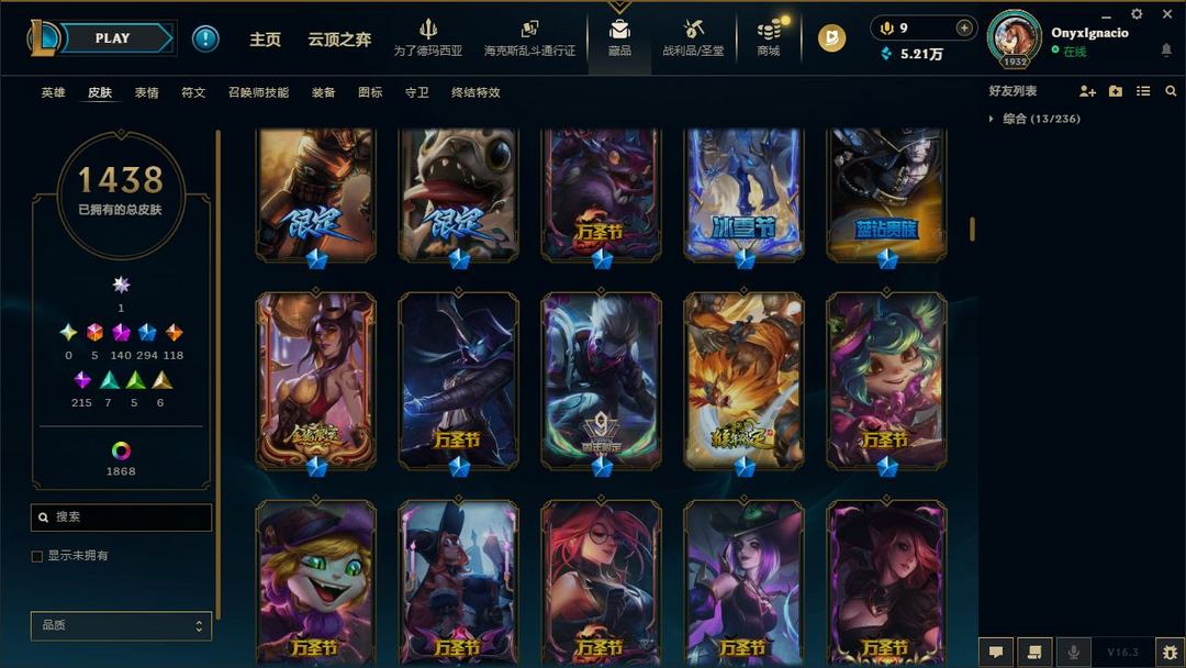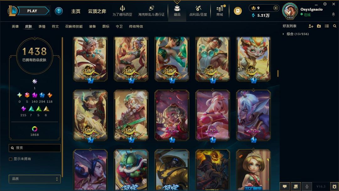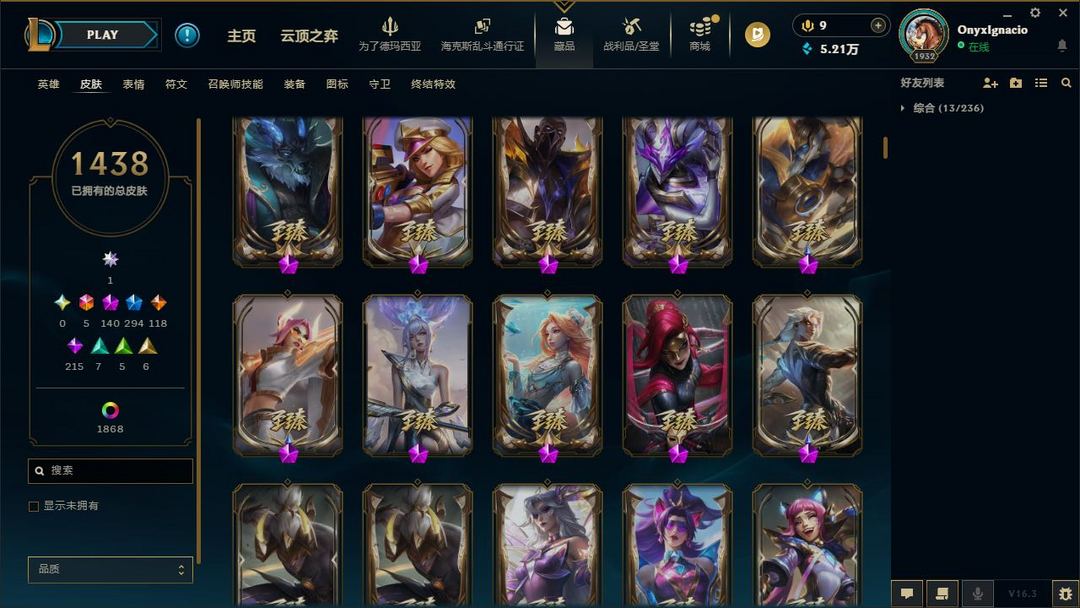 【LOL大王】3300P乄1438原皮乄1868炫彩乄84臻彩乄140神话乄294限定乄殿堂阿狸