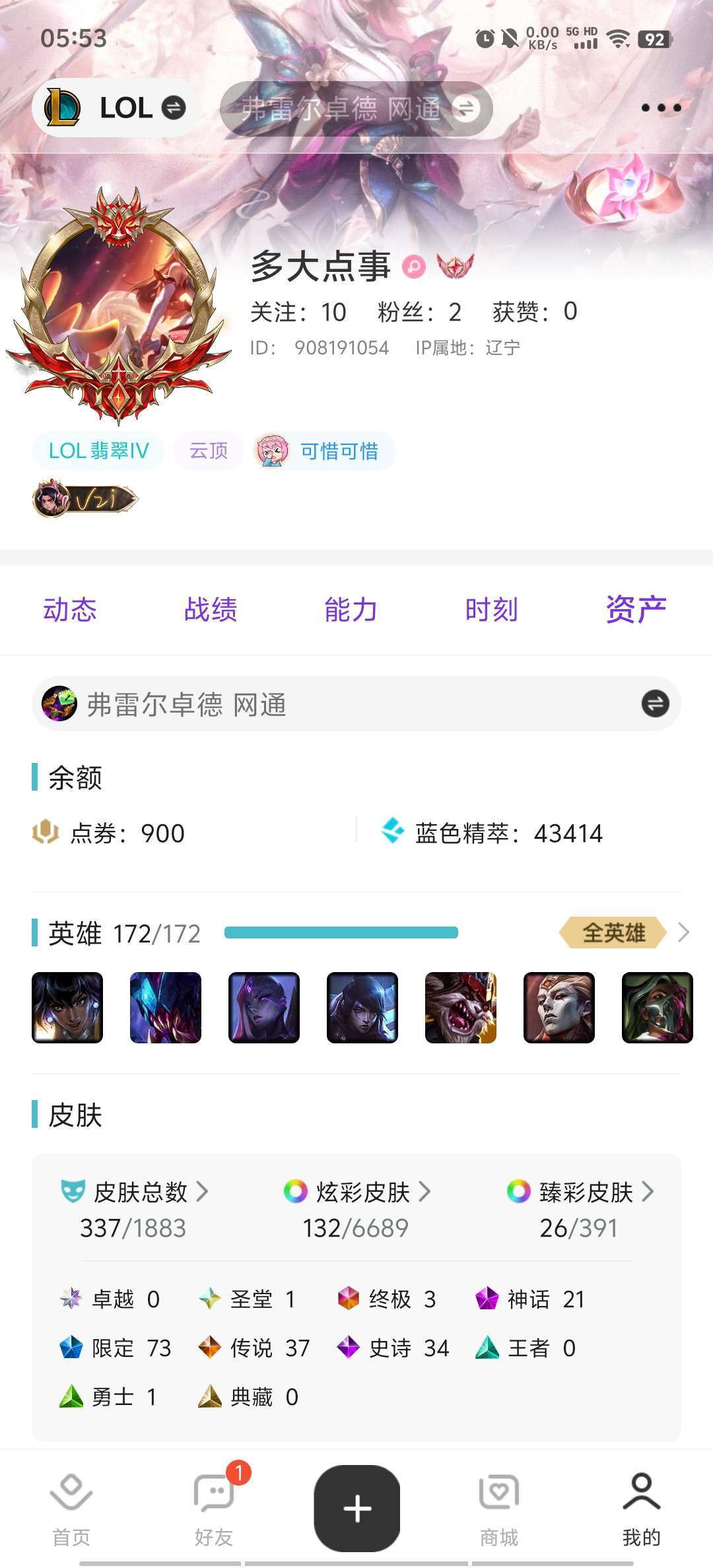 游戏区服:英雄联盟-联盟四区-弗雷尔卓德