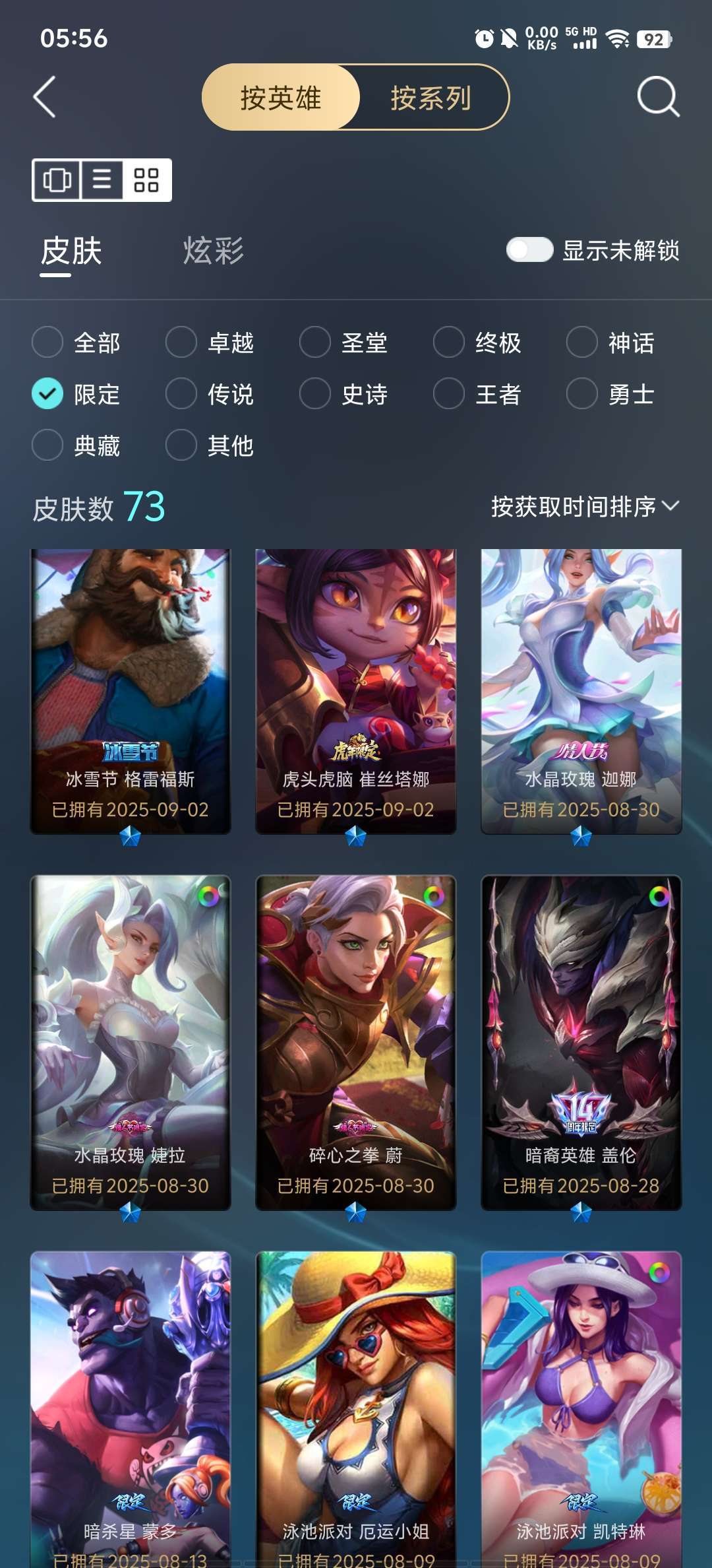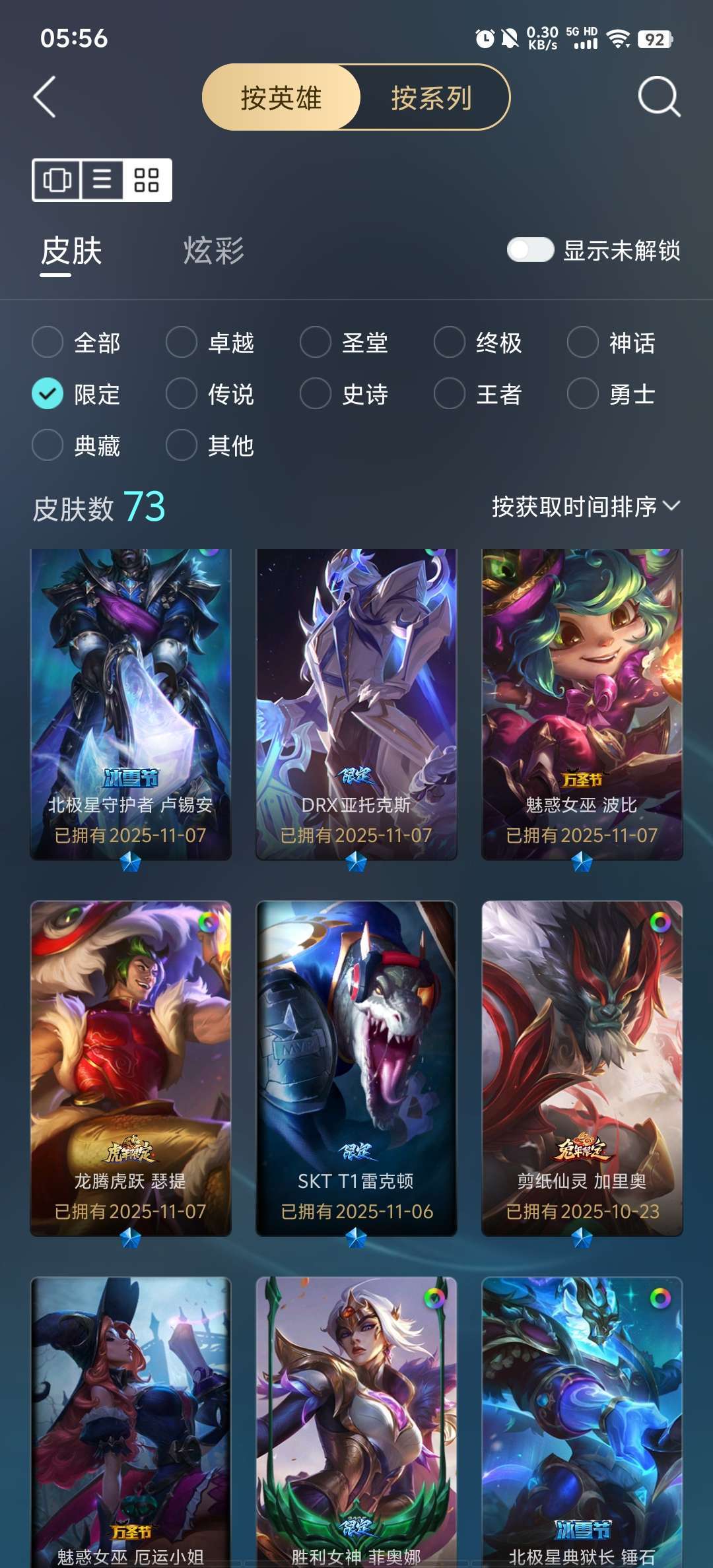 337皮肤 可排位 圣洁神王诺手 圣堂铁男 拉克丝熊猫娃娃全臻彩 各种至臻限定传说皮肤