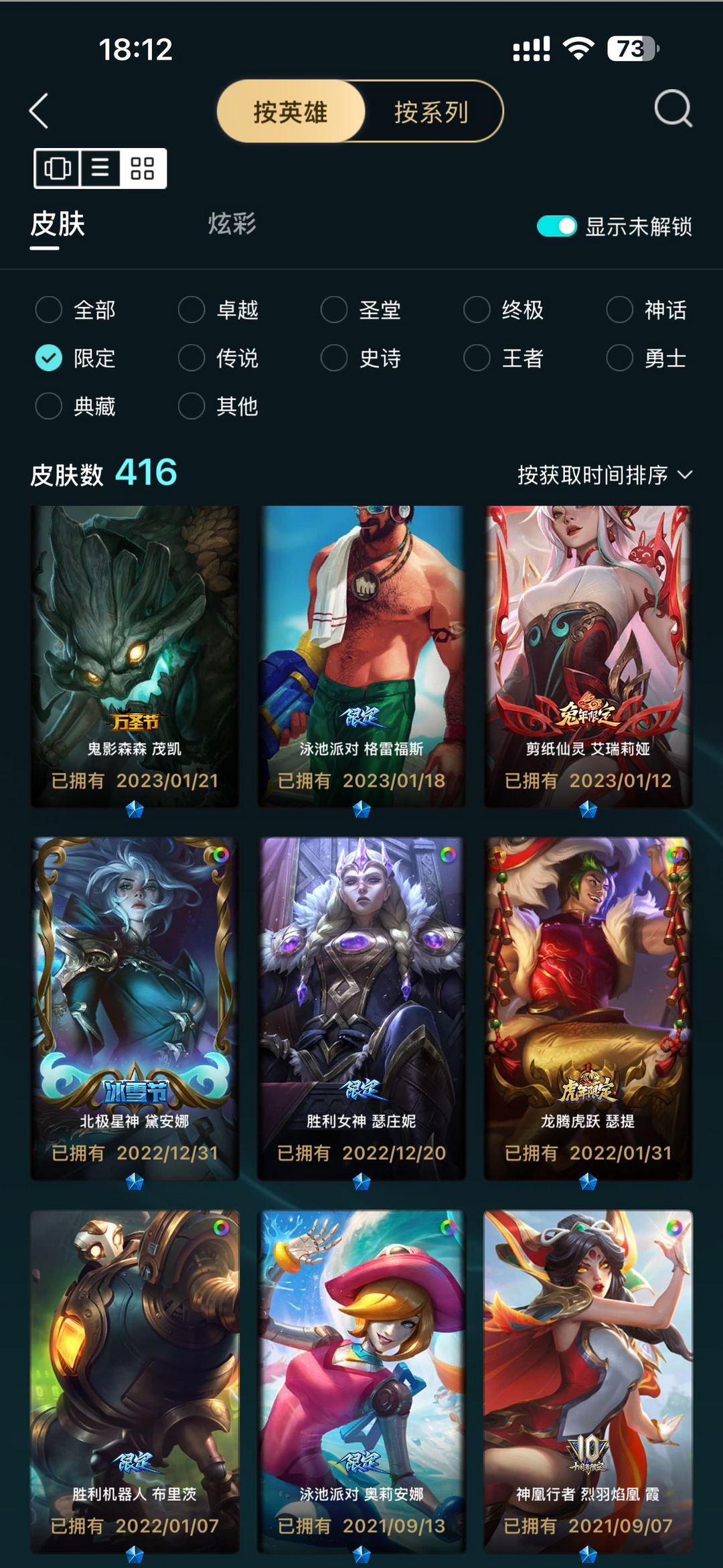 佛爷除了冠军都有,金克斯星守年限,至臻奎ez霞等等主流英雄基本都有好皮肤